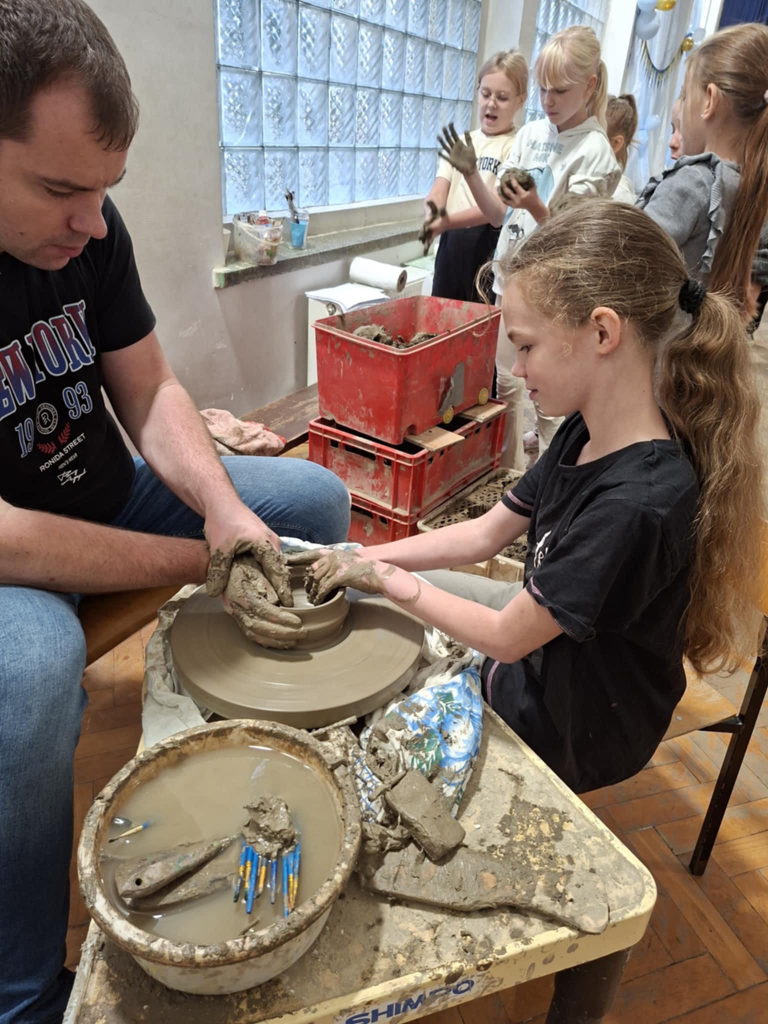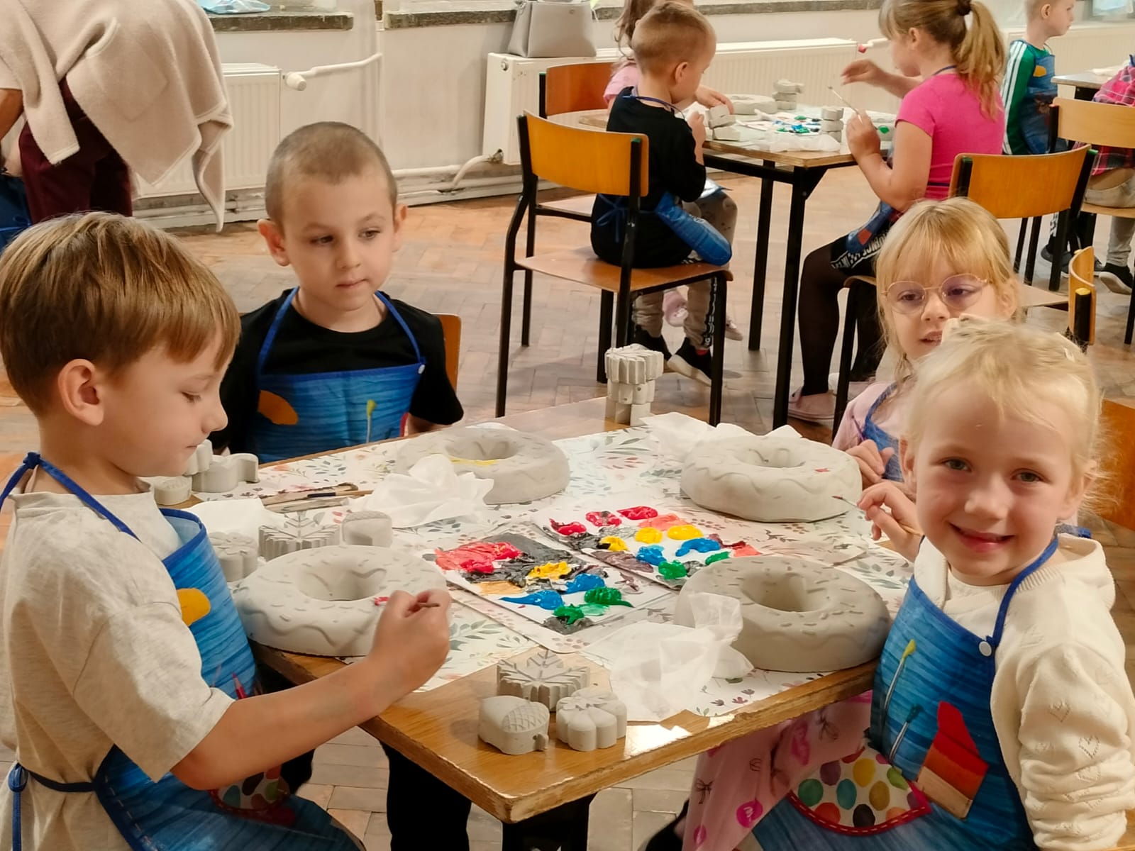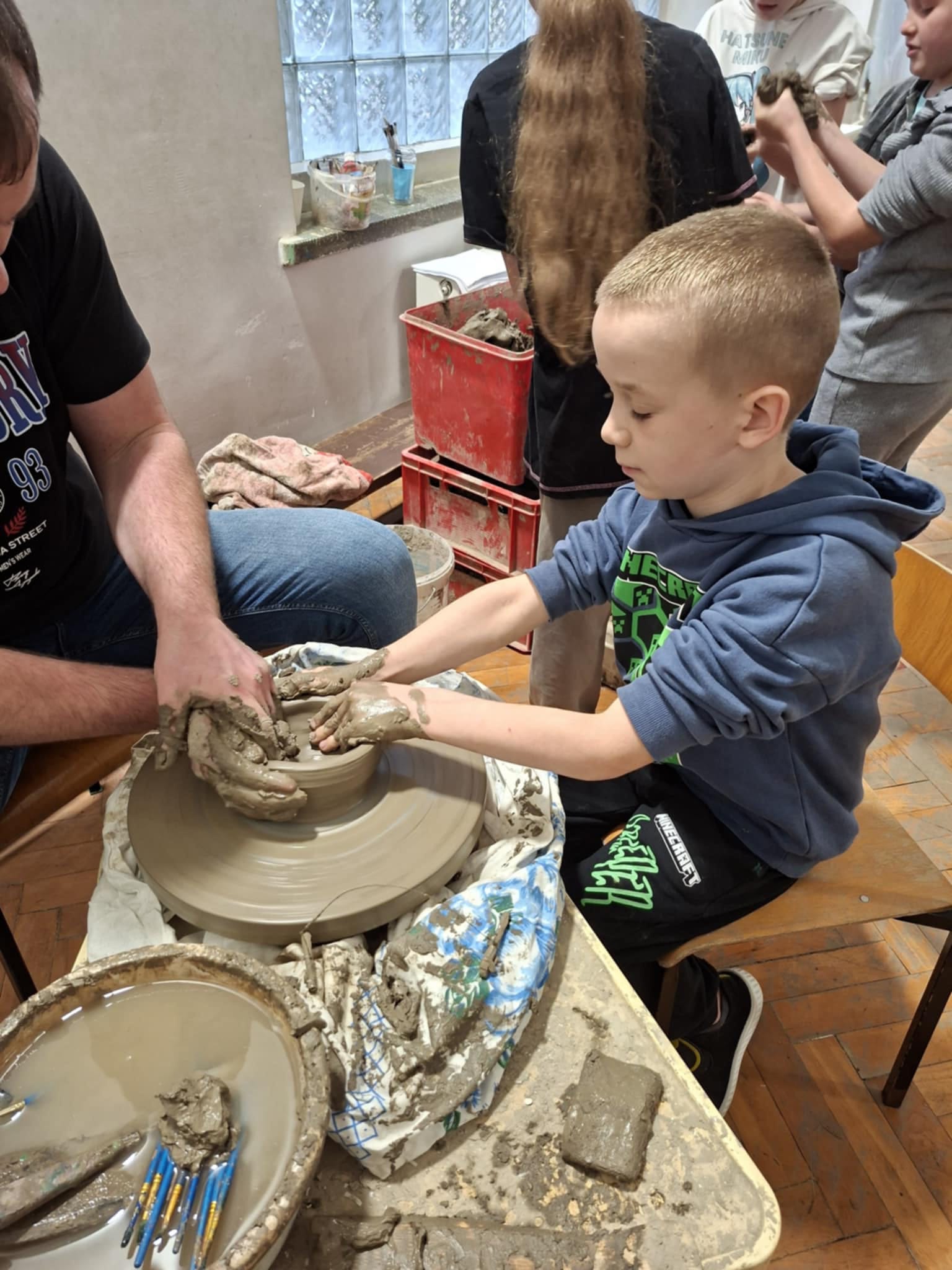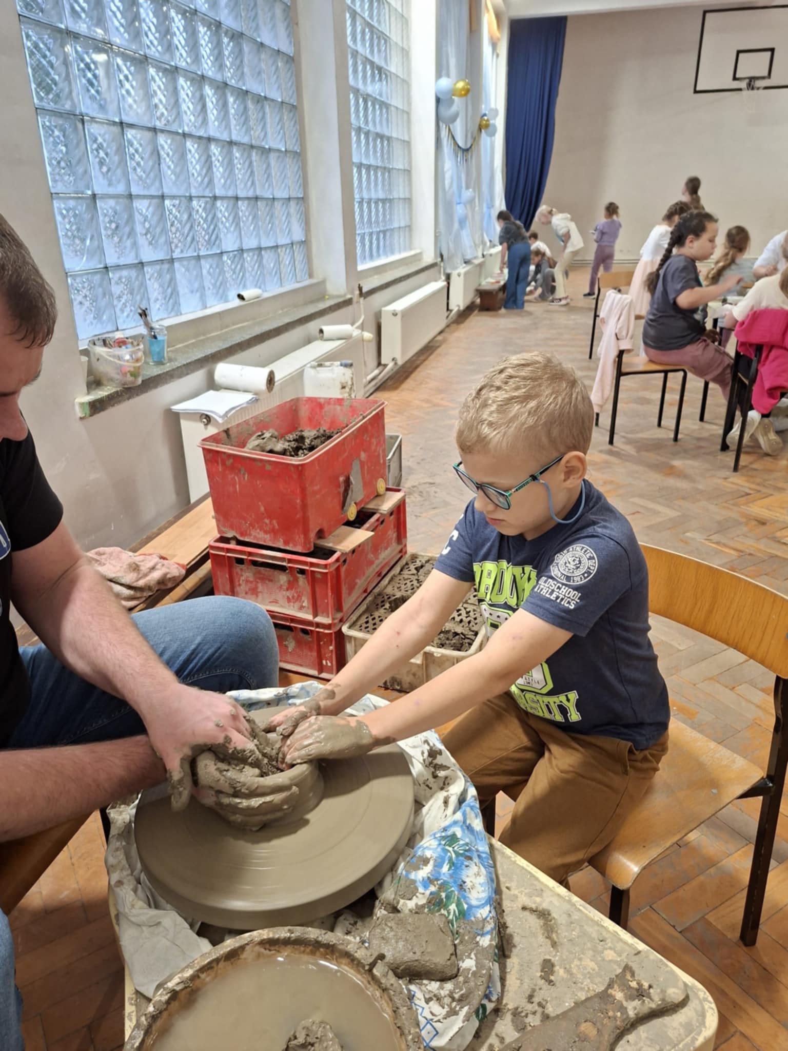 Uczniowie klas 0-8 mieli okazję spróbować swoich sił w lepieniu z gliny pod okiem specjalisty, który wprowadził dzieci w tajniki pracy z tym materiałem. Uczniowie tworzyli róznokształtne miseczki i ozdabiali odlewy z gipsu. Każdy z uczestników warsztatów miał szansę na indywidualną twórczość, eksperymentując z kształtami i ozdobami.