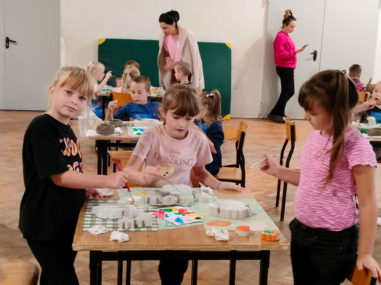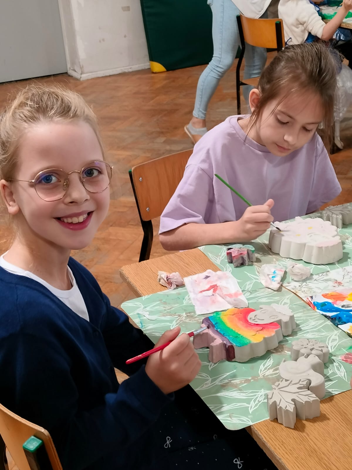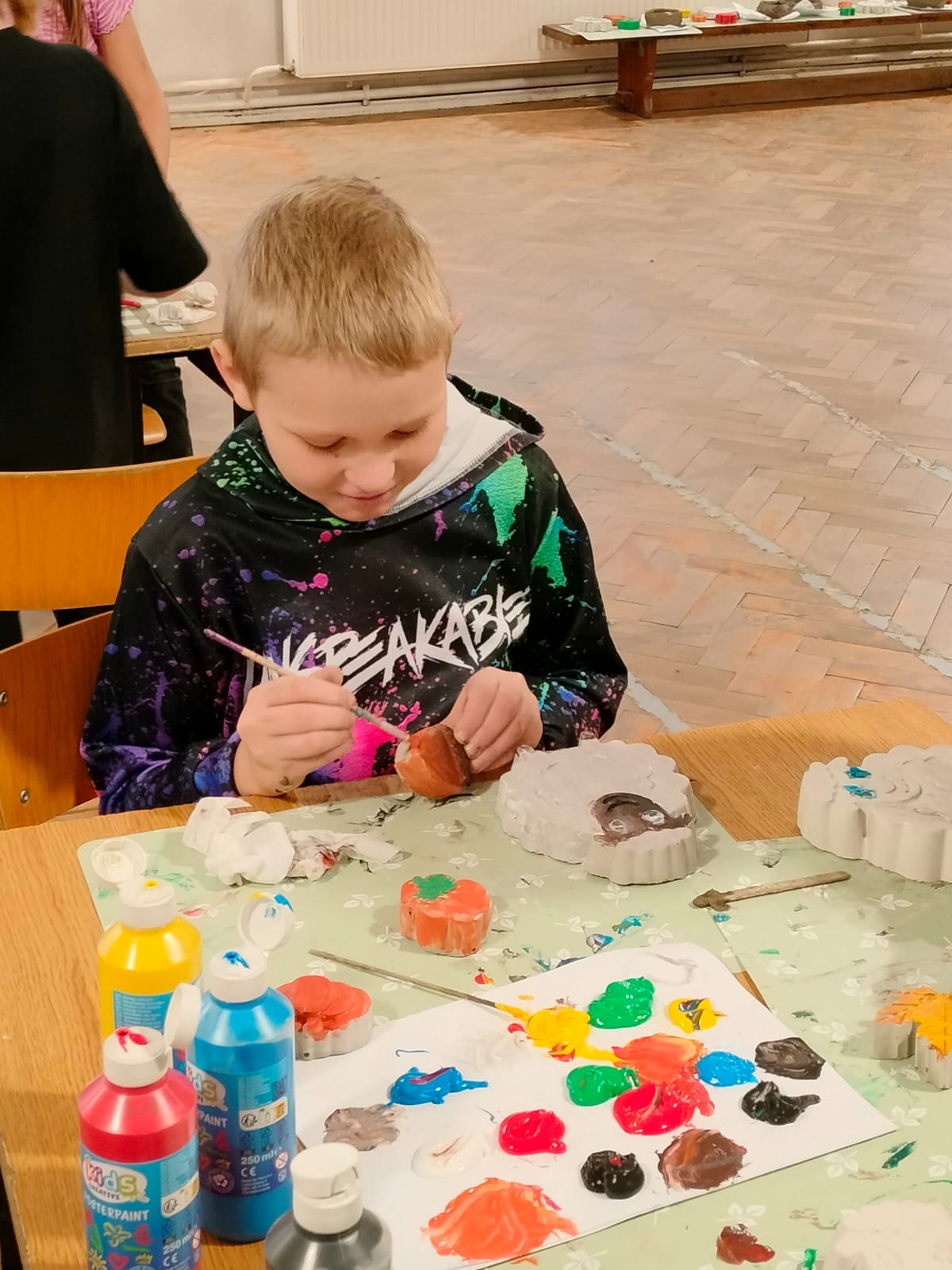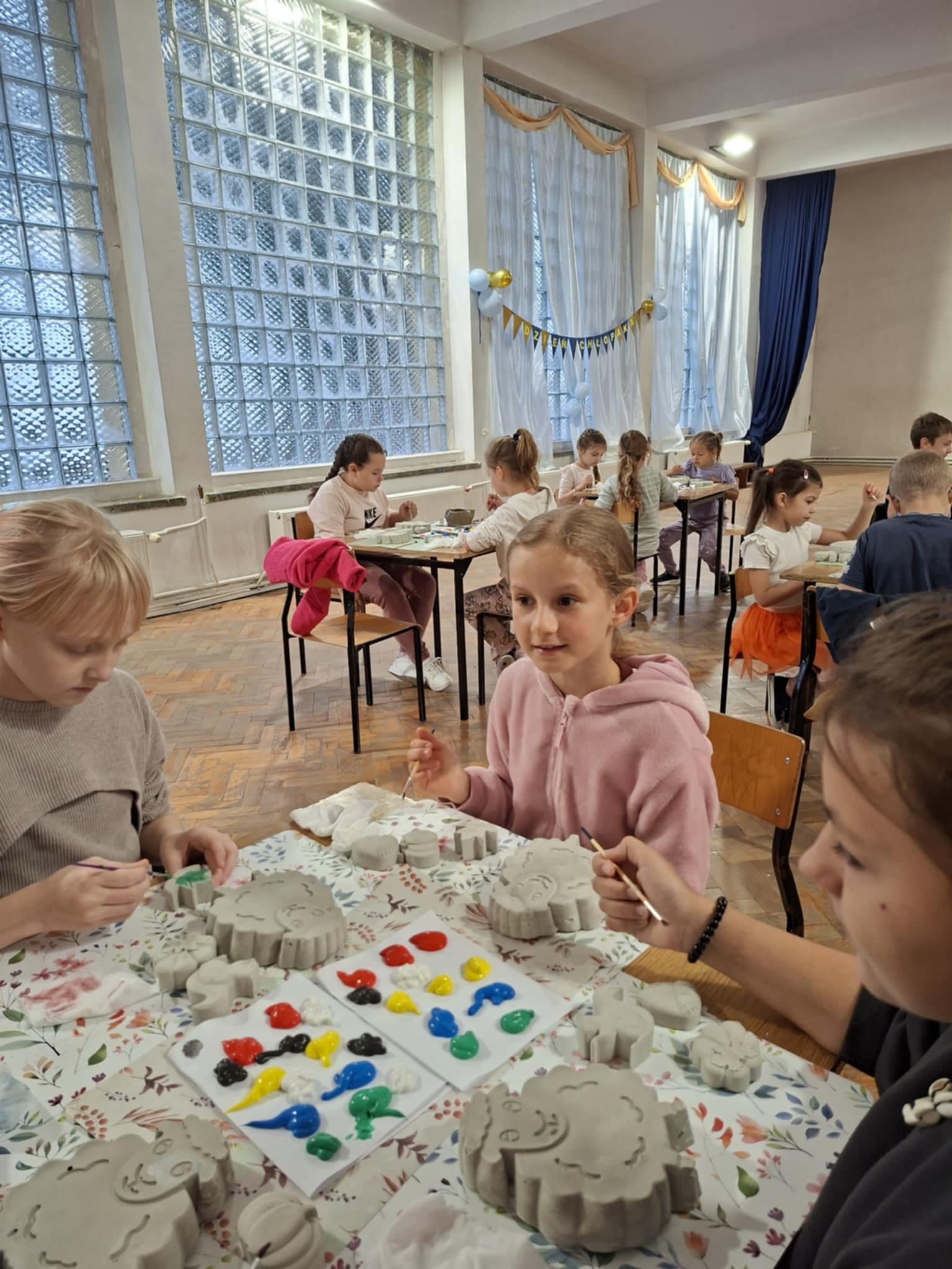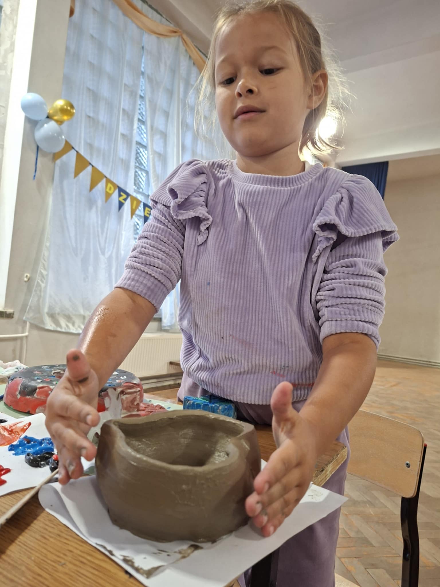 Uczniowie klas 0-8 mieli okazję spróbować swoich sił w lepieniu z gliny pod okiem specjalisty, który wprowadził dzieci w tajniki pracy z tym materiałem. Uczniowie tworzyli róznokształtne miseczki i ozdabiali odlewy z gipsu. Każdy z uczestników warsztatów miał szansę na indywidualną twórczość, eksperymentując z kształtami i ozdobami.