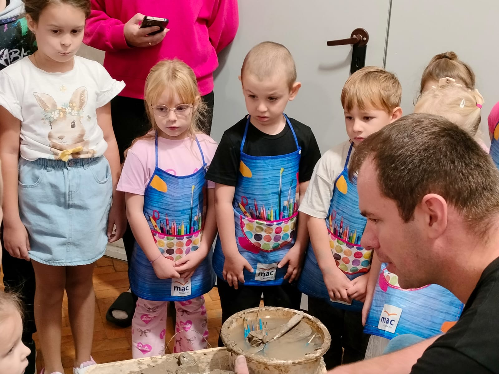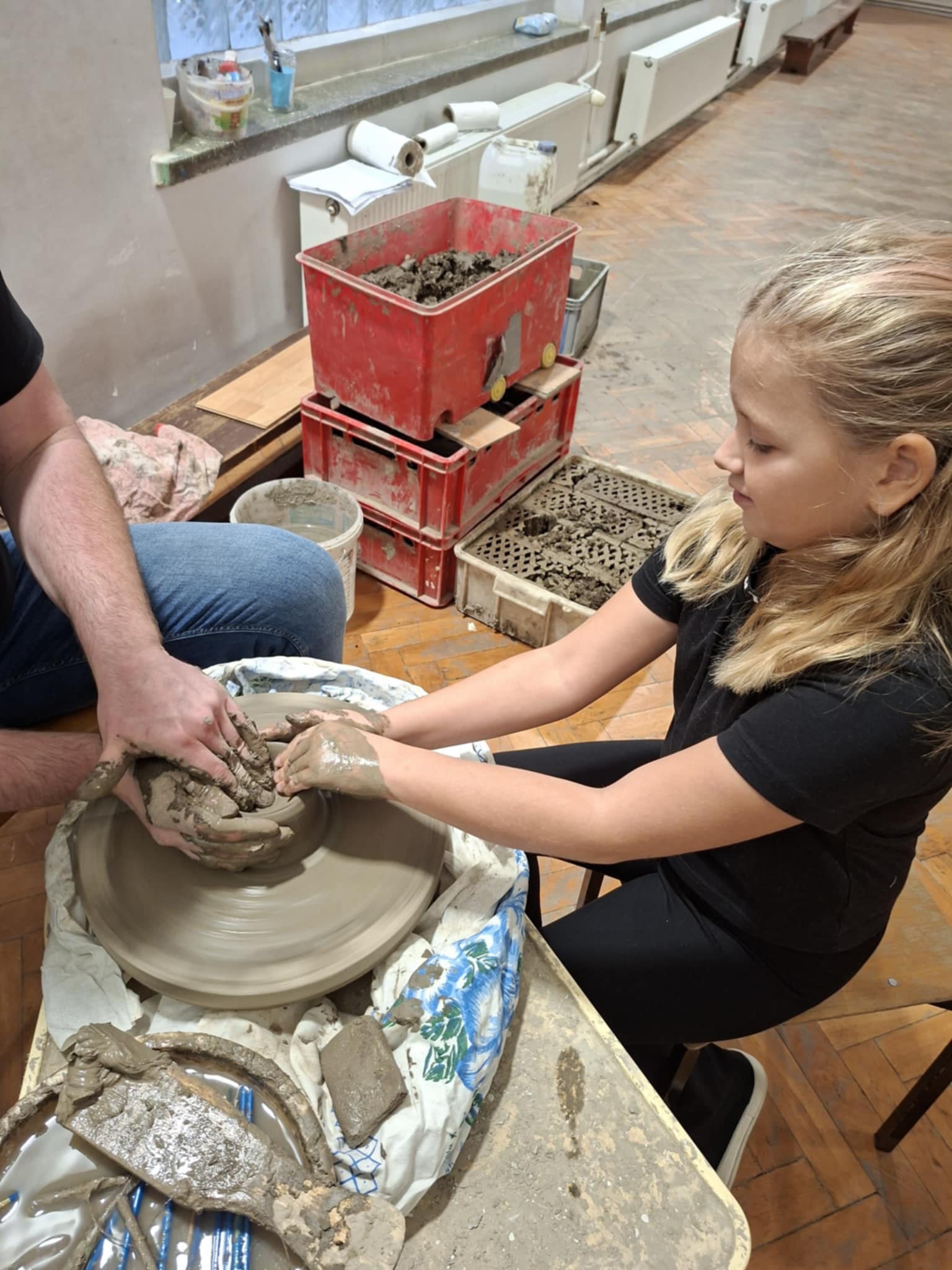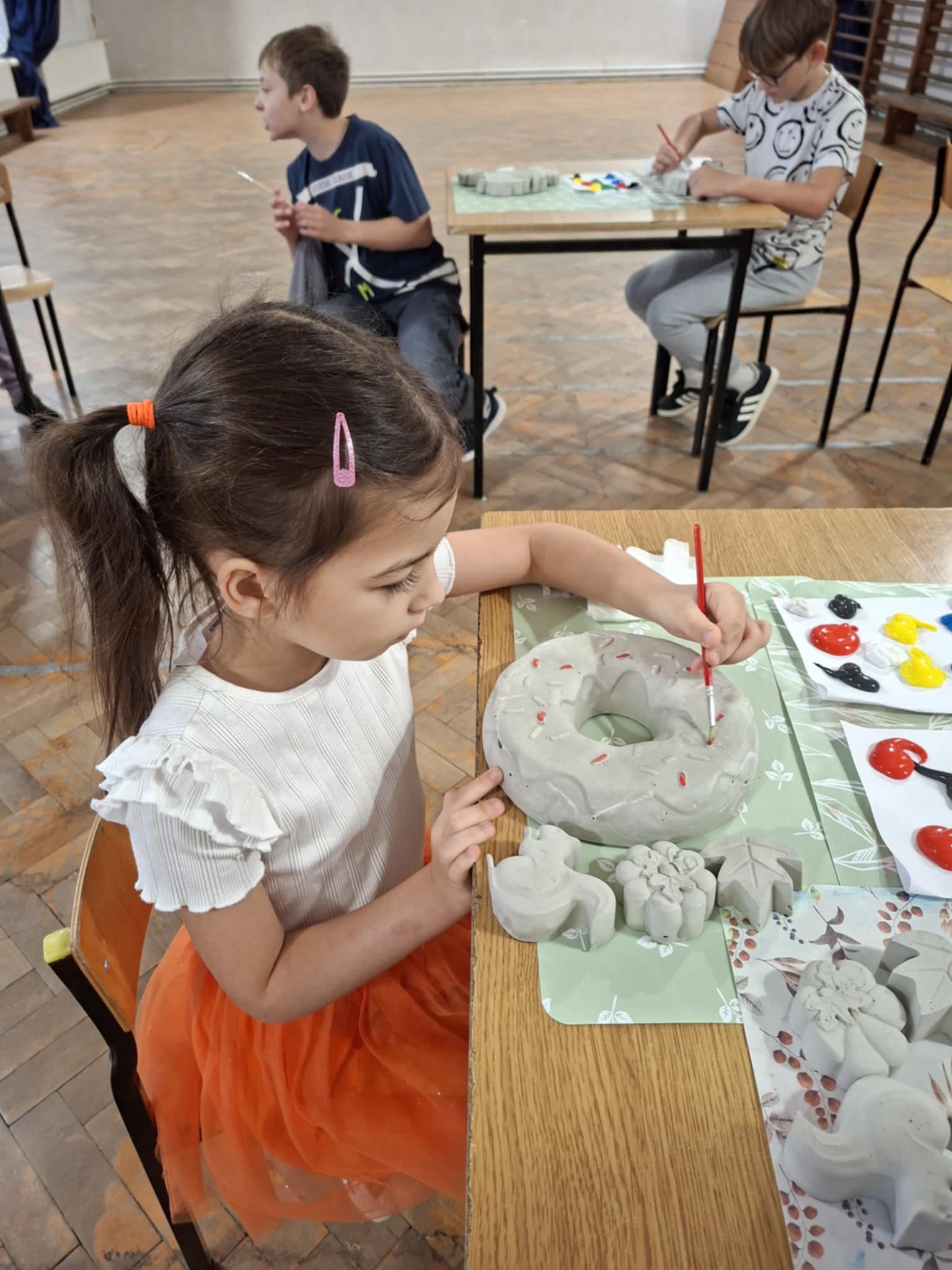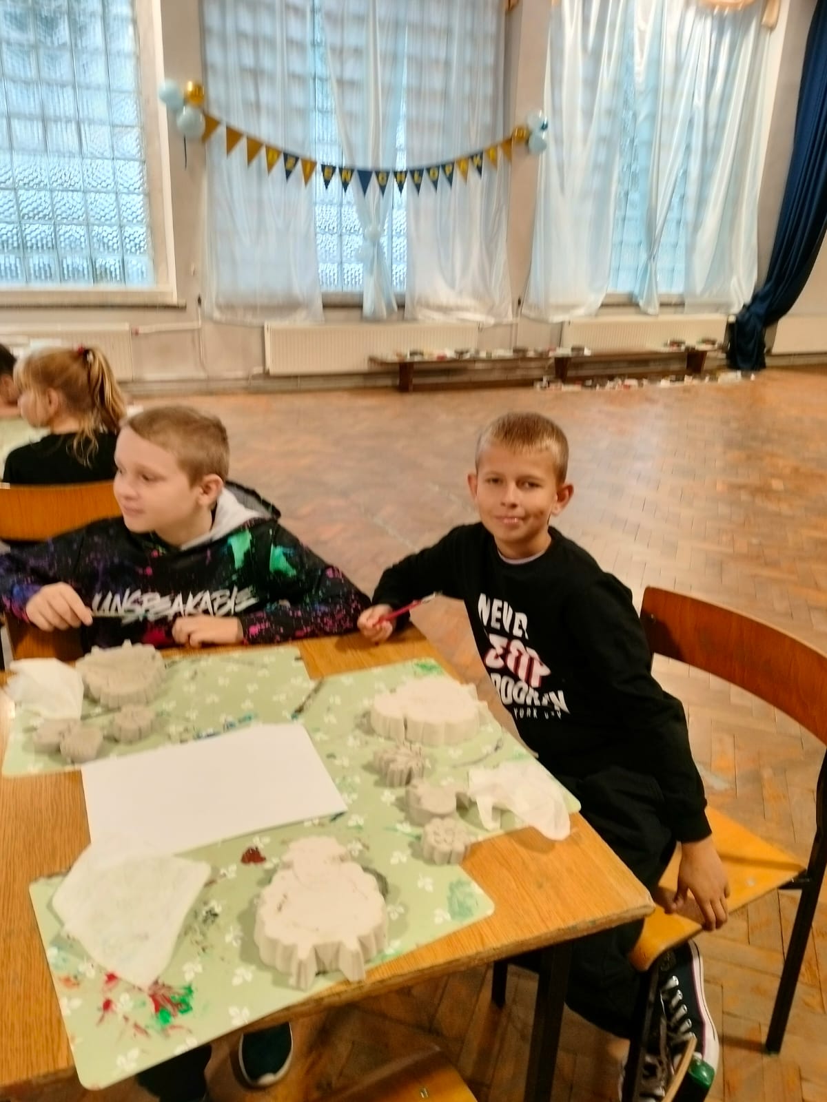 Uczniowie klas 0-8 mieli okazję spróbować swoich sił w lepieniu z gliny pod okiem specjalisty, który wprowadził dzieci w tajniki pracy z tym materiałem. Uczniowie tworzyli róznokształtne miseczki i ozdabiali odlewy z gipsu. Każdy z uczestników warsztatów miał szansę na indywidualną twórczość, eksperymentując z kształtami i ozdobami.