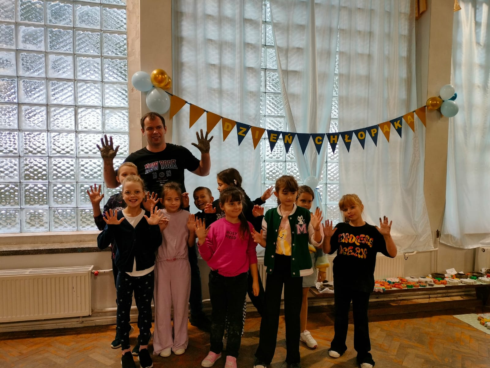 Po zakończeniu warsztatów zorganizowano wspólną zabawę, która obejmowała gry integracyjne i konkursy. Podczas dnia nie zabrakło również słodkiego poczęstunku oraz głośnych okrzyków radości. Był to czas pełen uśmiechów, twórczości oraz wspólnej zabawy.