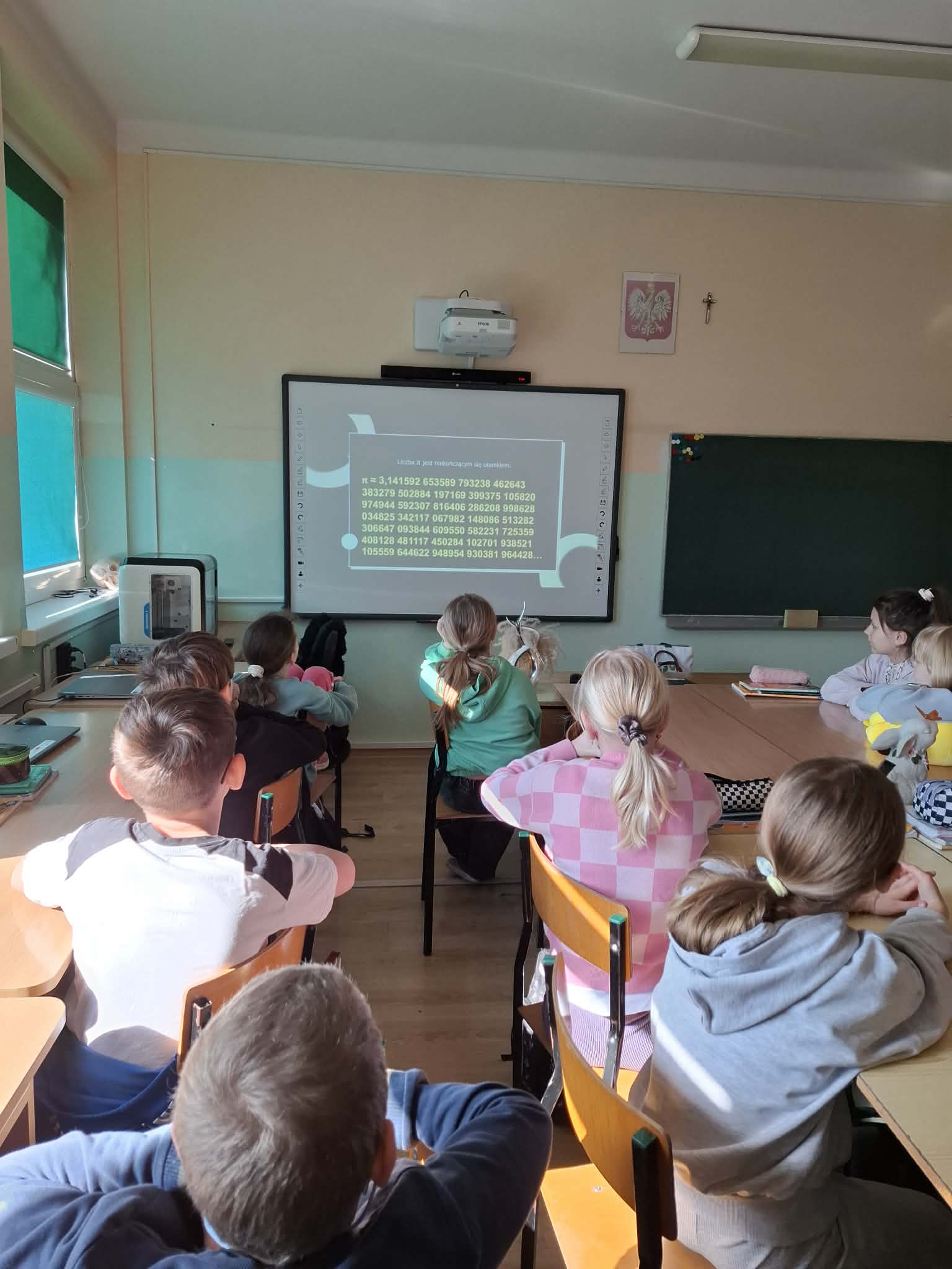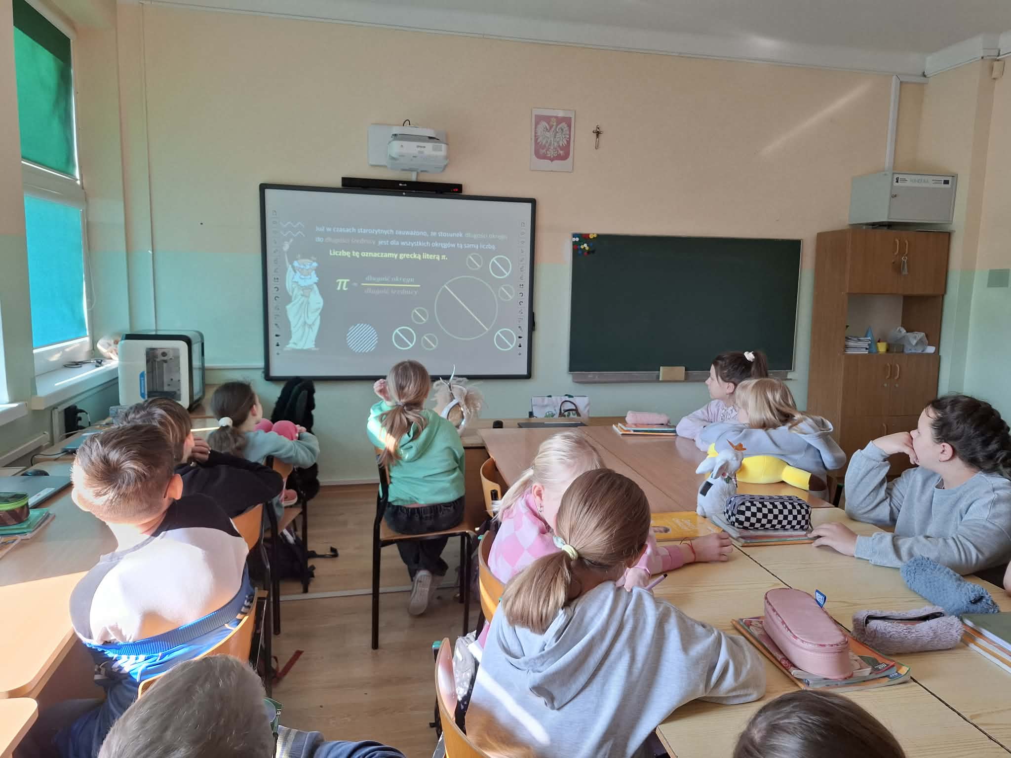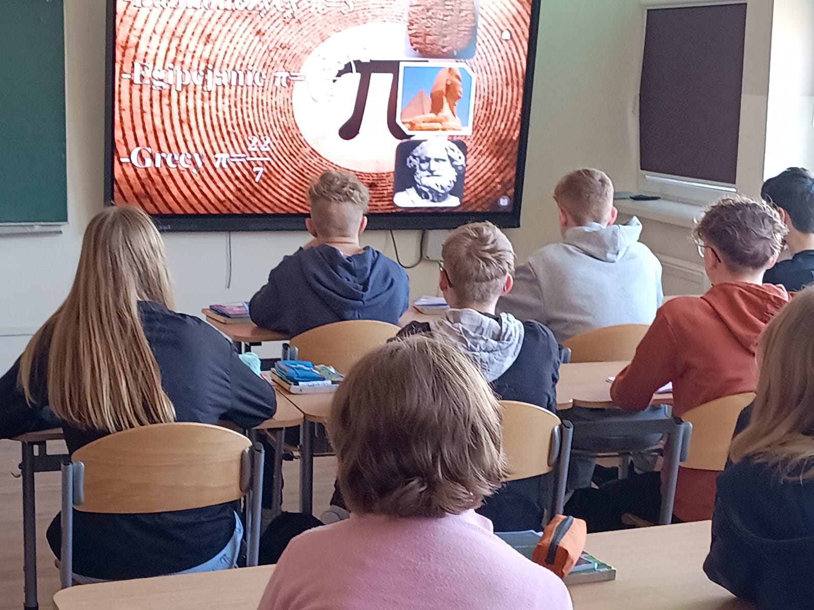 Podczas lekcji matematyki uczniowie mieli okazję przekonać się, że matematyka to nie tylko liczby, wzory i trudne obliczenia, ale także ciekawa przygoda i świetna zabawa. Poznawali historię oraz interesujące fakty dotyczące słynnej „Ludolfiny”, czyli liczby π, a także dowiedzieli się, gdzie pojawia się ona w matematyce i w życiu codziennym.