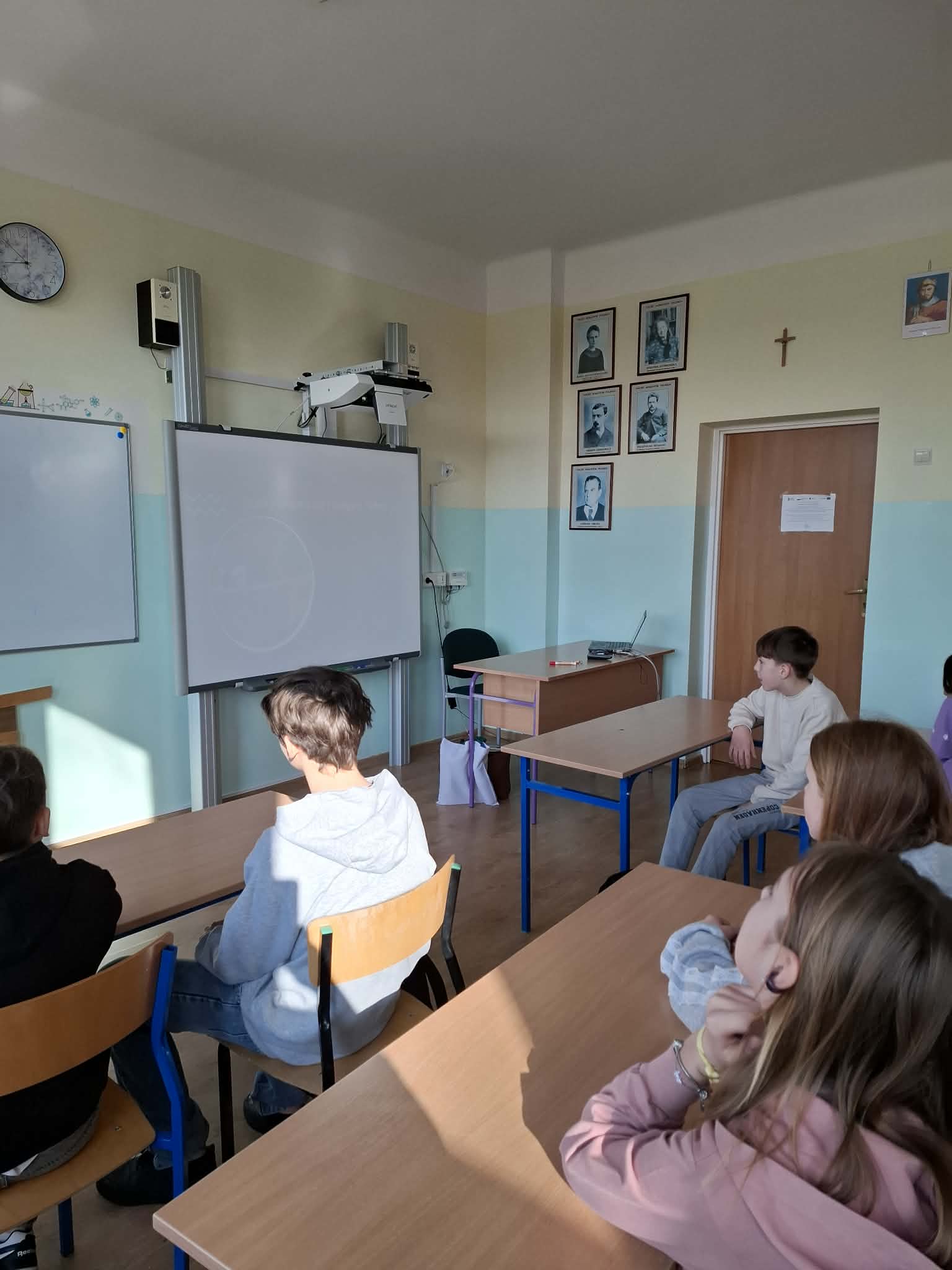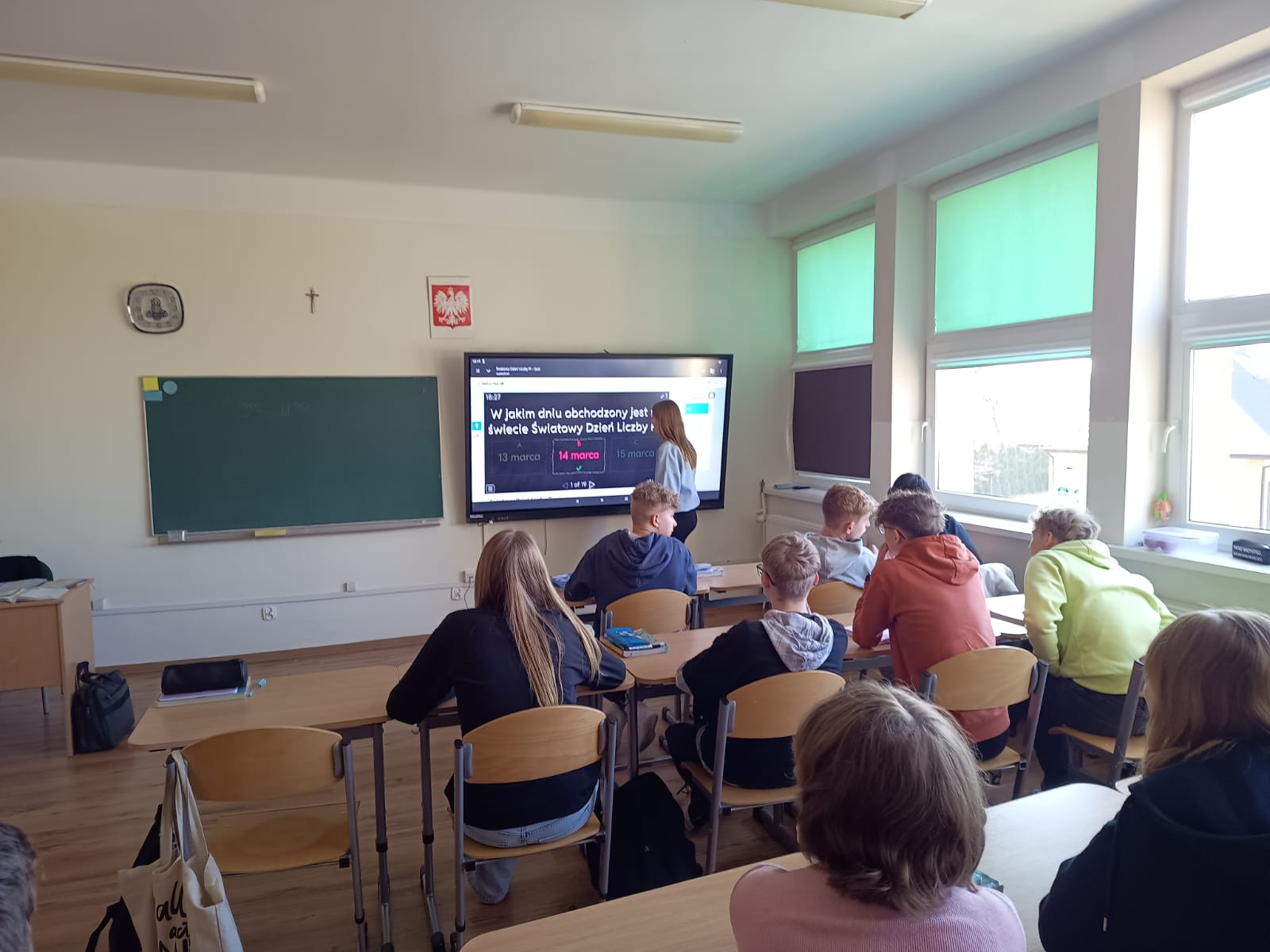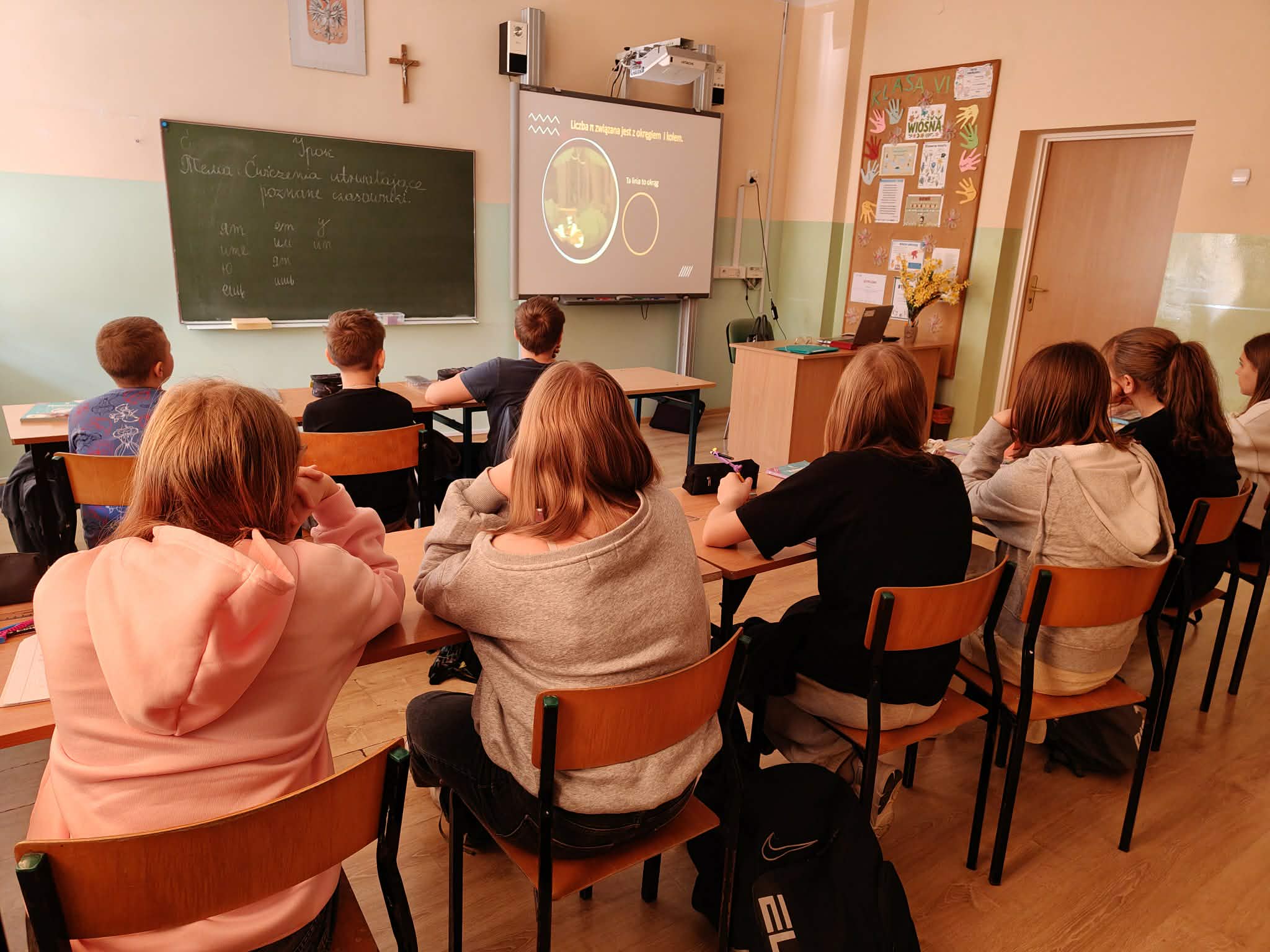 Podczas lekcji matematyki uczniowie mieli okazję przekonać się, że matematyka to nie tylko liczby, wzory i trudne obliczenia, ale także ciekawa przygoda i świetna zabawa. Poznawali historię oraz interesujące fakty dotyczące słynnej „Ludolfiny”, czyli liczby π, a także dowiedzieli się, gdzie pojawia się ona w matematyce i w życiu codziennym.