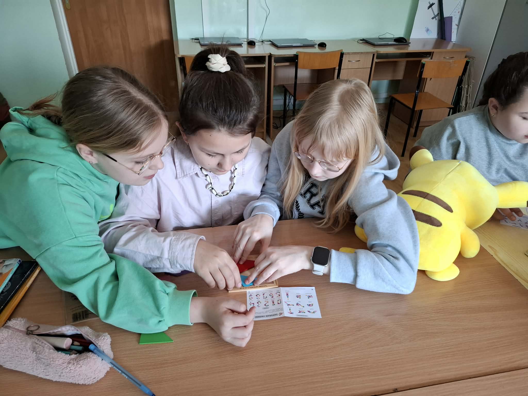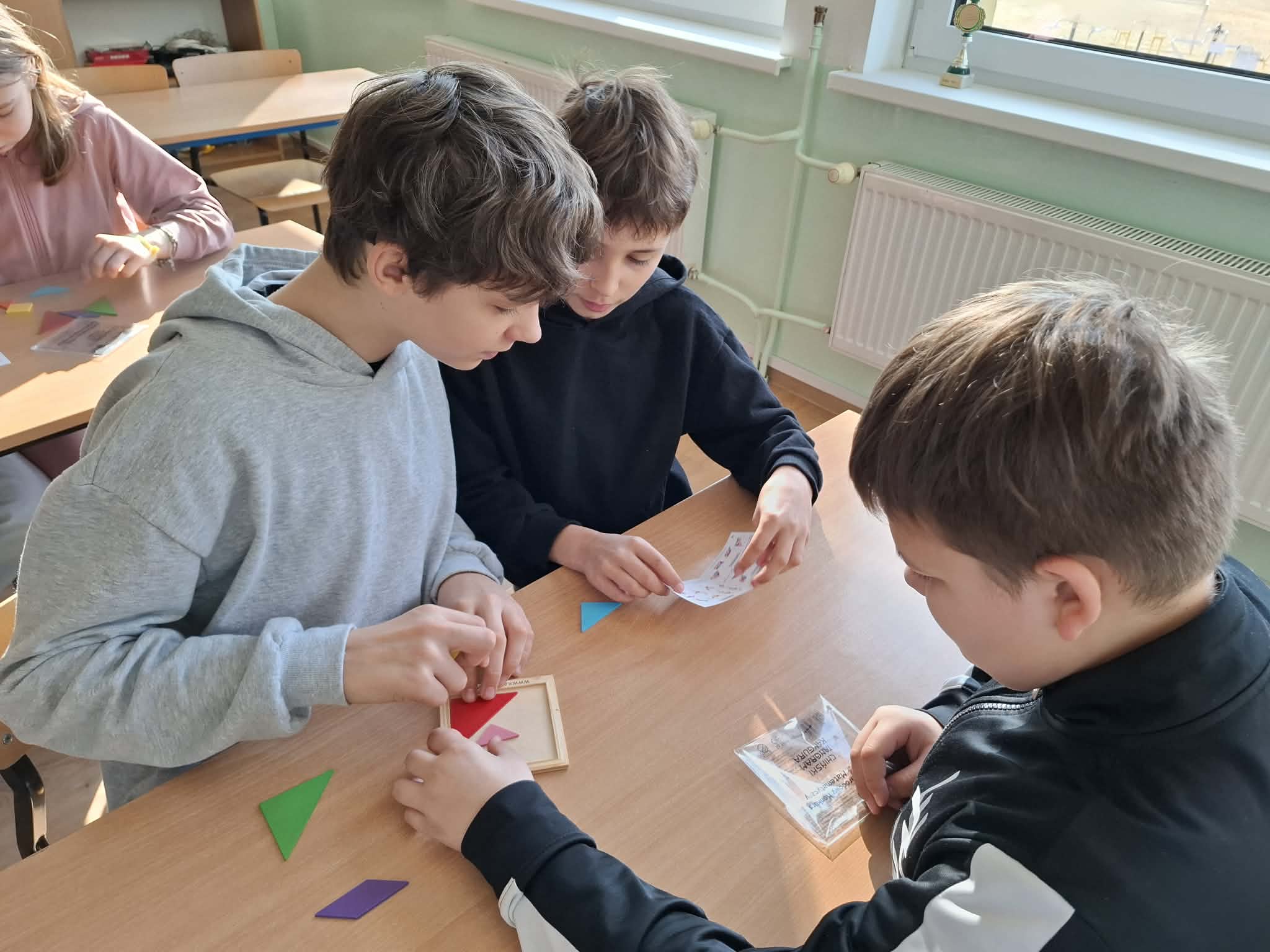 Na uczniów czekało wiele aktywności: zagadki matematyczne, rebusy, układanie tangramów oraz zadania związane z kołem i okręgiem. Duże zainteresowanie wzbudziło także rozwinięcie dziesiętne liczby π, które – ku zdziwieniu wielu – nigdy się nie kończy! ![]()