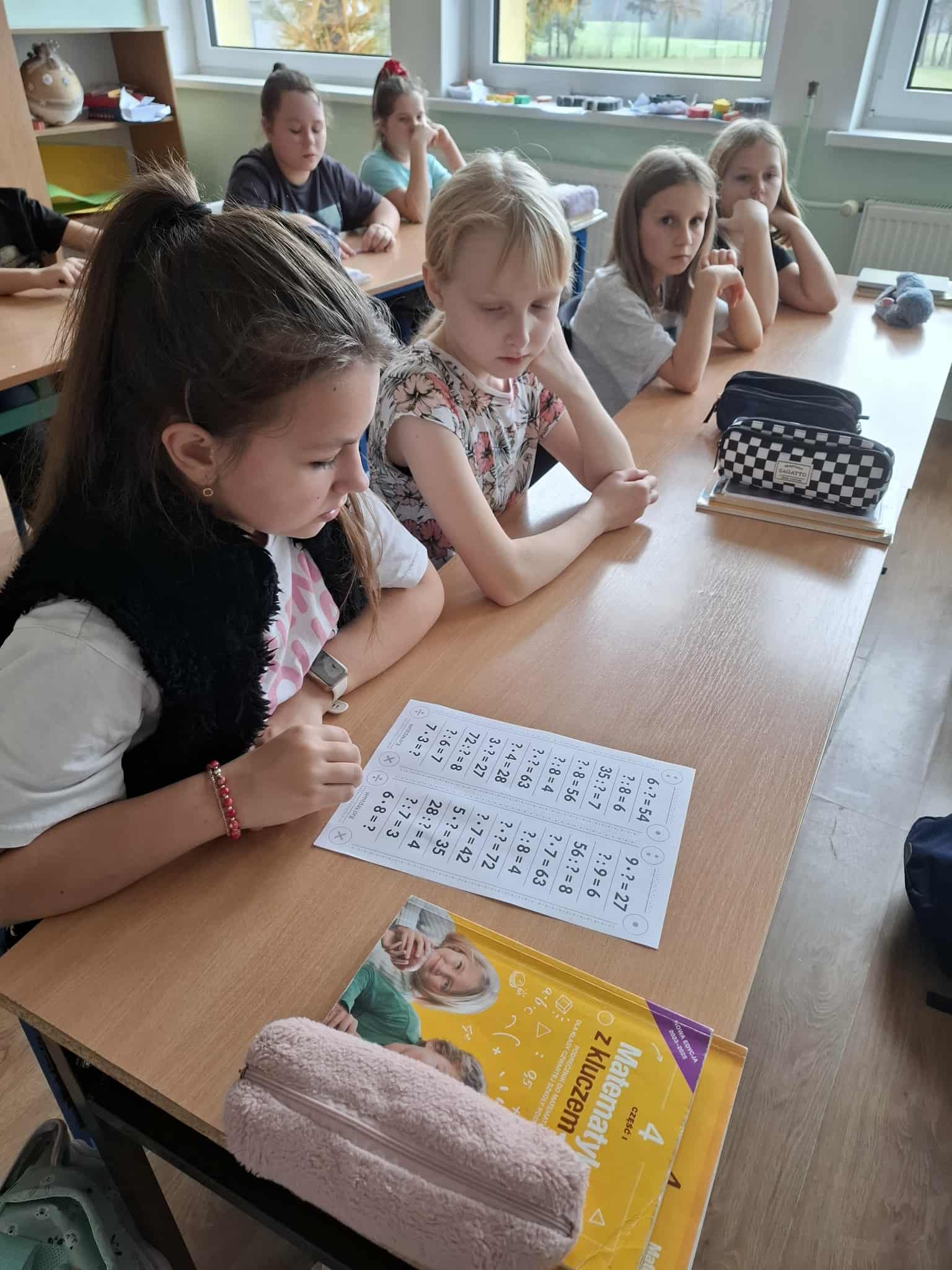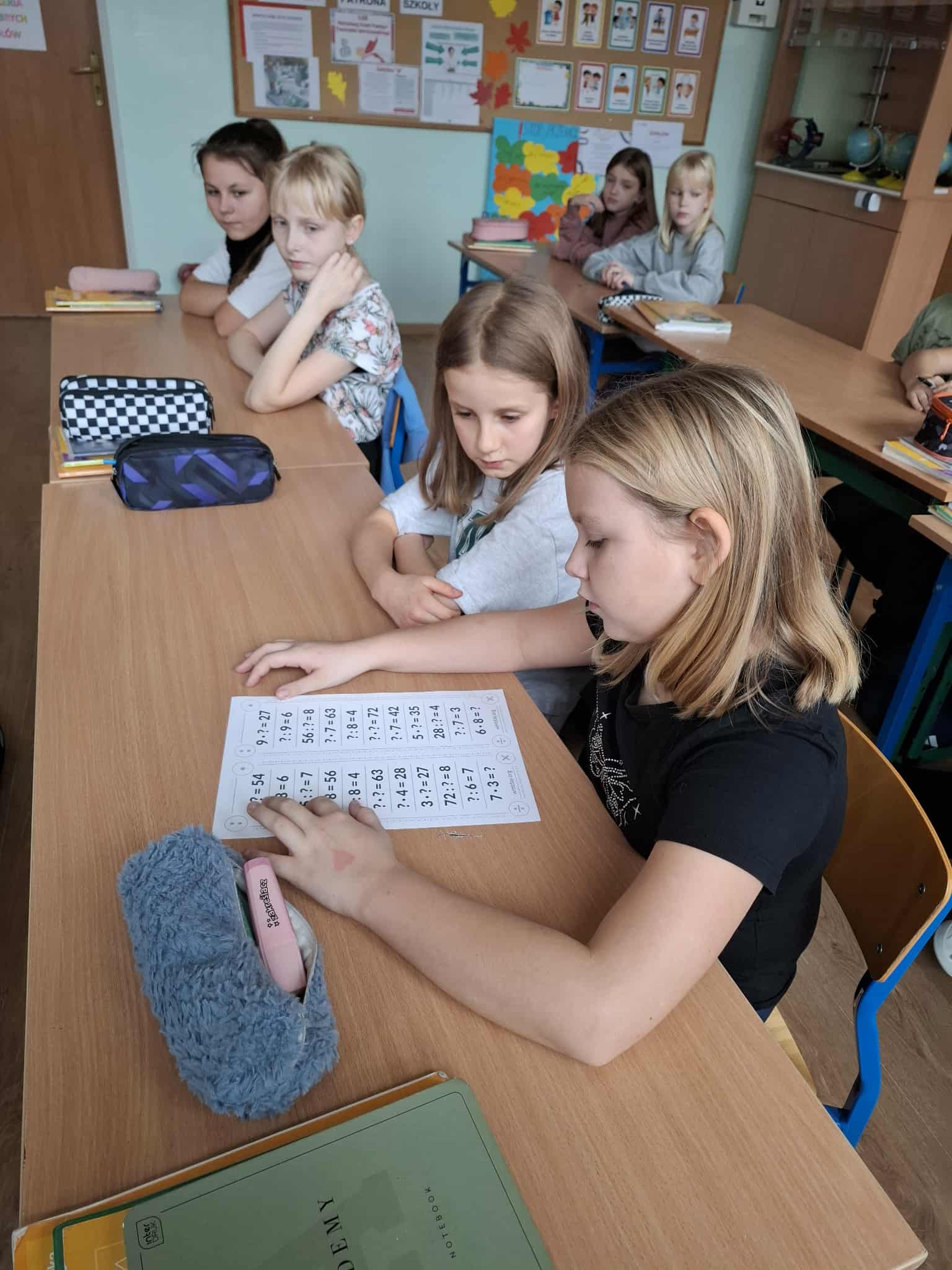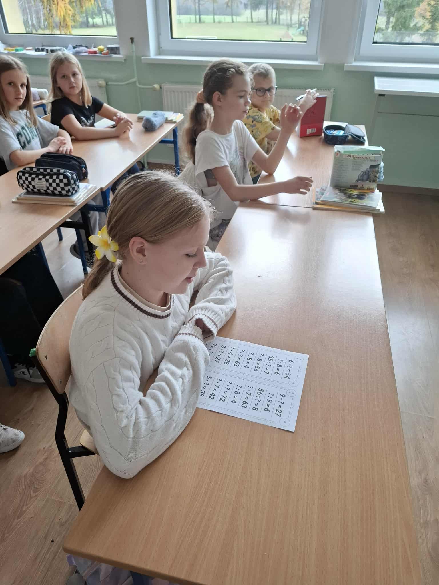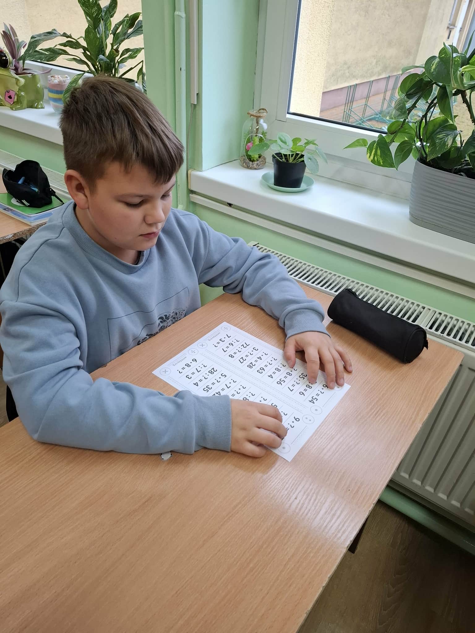 Takie formy pracy sprawiły, że uczniowie z zaangażowaniem powtarzali i utrwalali materiał, a jednocześnie przekonali się, że matematyka może być nie tylko pożyteczna, ale też pełna radości i satysfakcji. Kulminacyjnym punktem tygodnia był egzamin z tabliczki mnożenia, który uczniowie klas 4–8 pisali podczas lekcji matematyki. Każdy miał okazję sprawdzić swoją wiedzę i zmierzyć się z zadaniami o różnym stopniu trudności. Uczniowie, którzy poradzili sobie bezbłędnie, zdobyli zaszczytny tytuł Eksperta Tabliczki Mnożenia oraz otrzymali pamiątkowe certyfikaty.