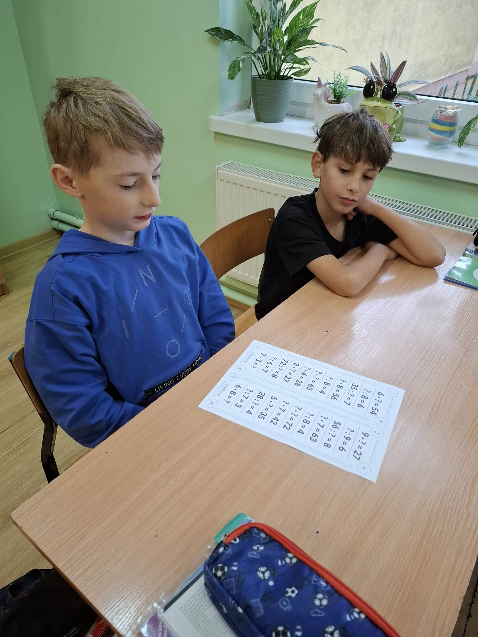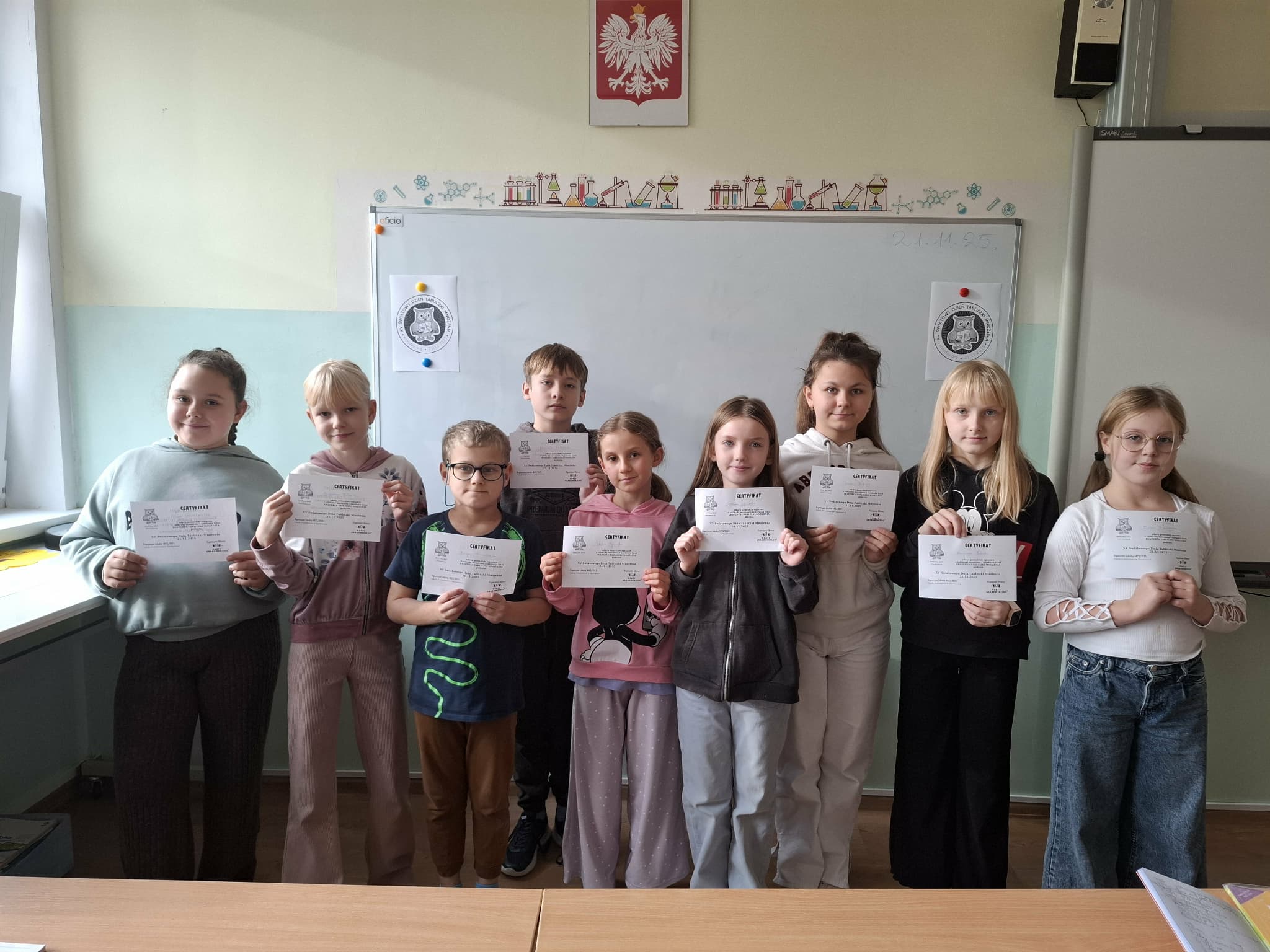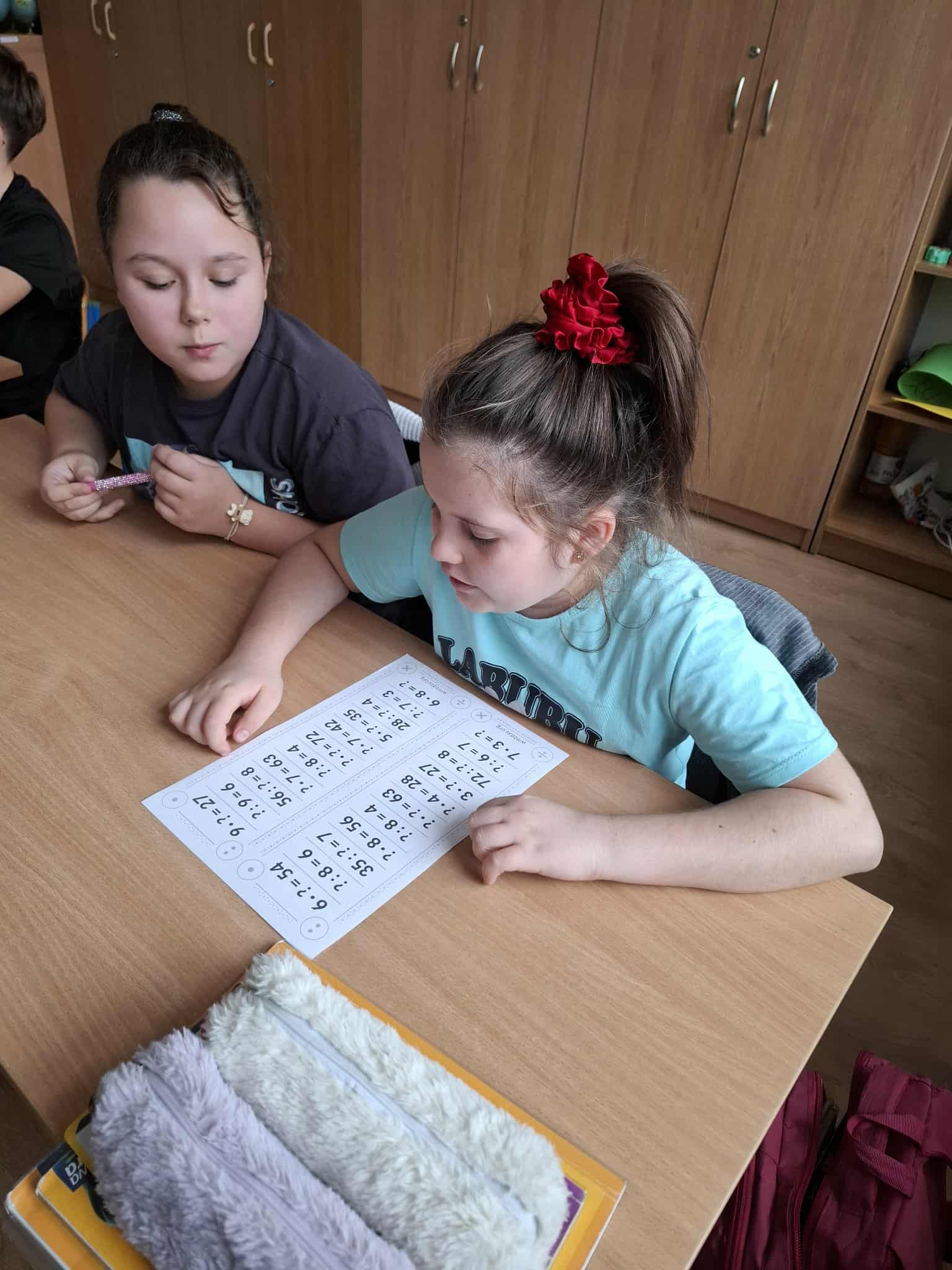 Takie formy pracy sprawiły, że uczniowie z zaangażowaniem powtarzali i utrwalali materiał, a jednocześnie przekonali się, że matematyka może być nie tylko pożyteczna, ale też pełna radości i satysfakcji. Kulminacyjnym punktem tygodnia był egzamin z tabliczki mnożenia, który uczniowie klas 4–8 pisali podczas lekcji matematyki. Każdy miał okazję sprawdzić swoją wiedzę i zmierzyć się z zadaniami o różnym stopniu trudności. Uczniowie, którzy poradzili sobie bezbłędnie, zdobyli zaszczytny tytuł Eksperta Tabliczki Mnożenia oraz otrzymali pamiątkowe certyfikaty.