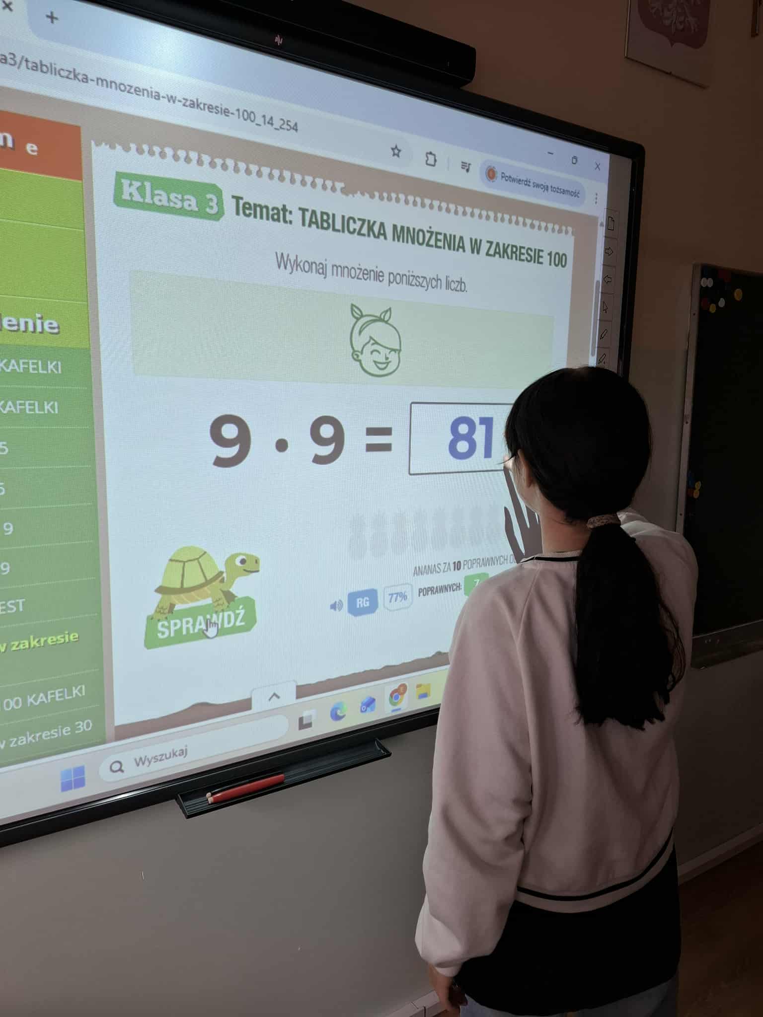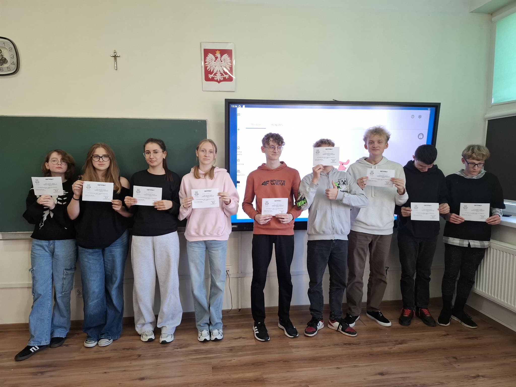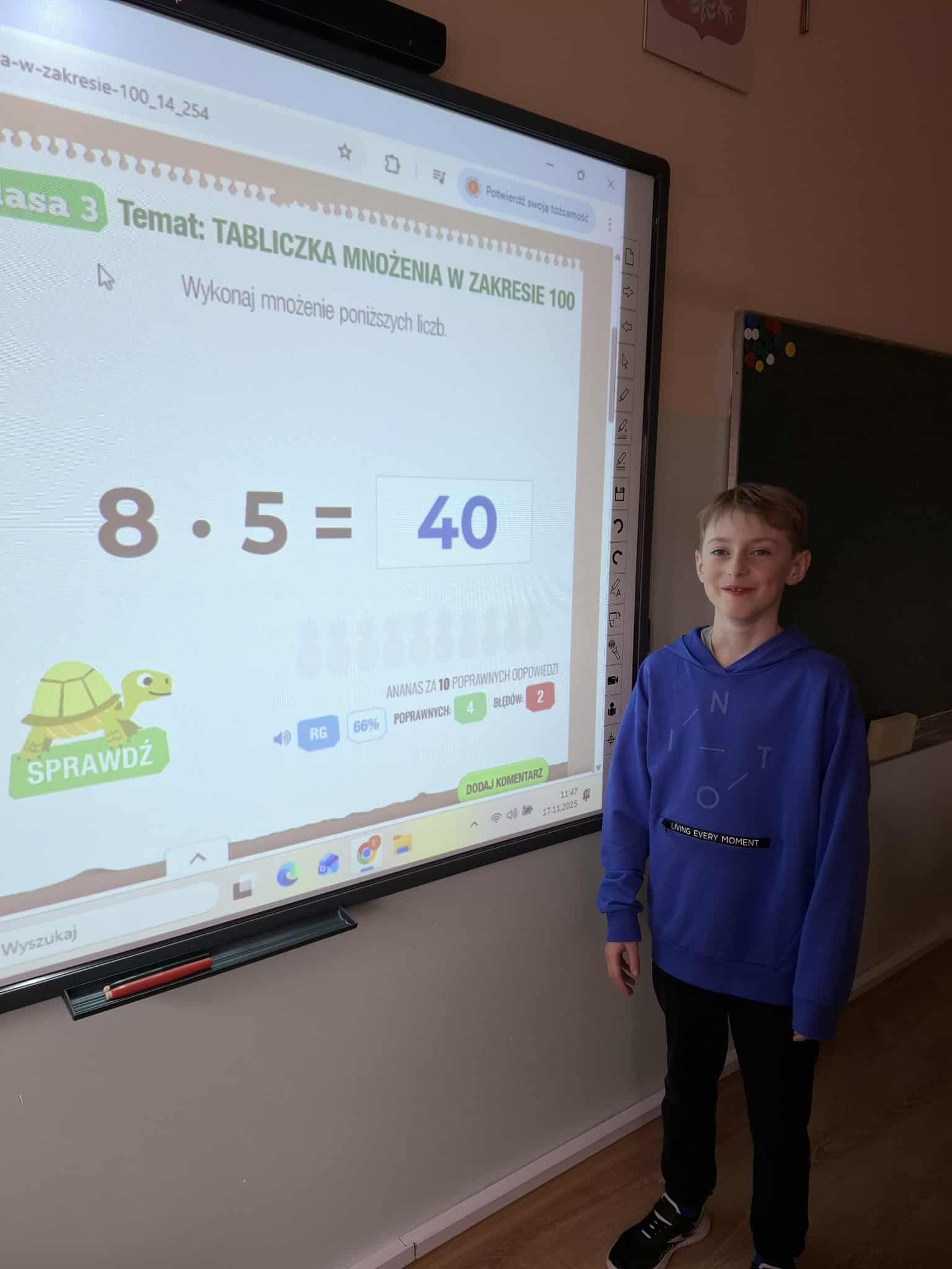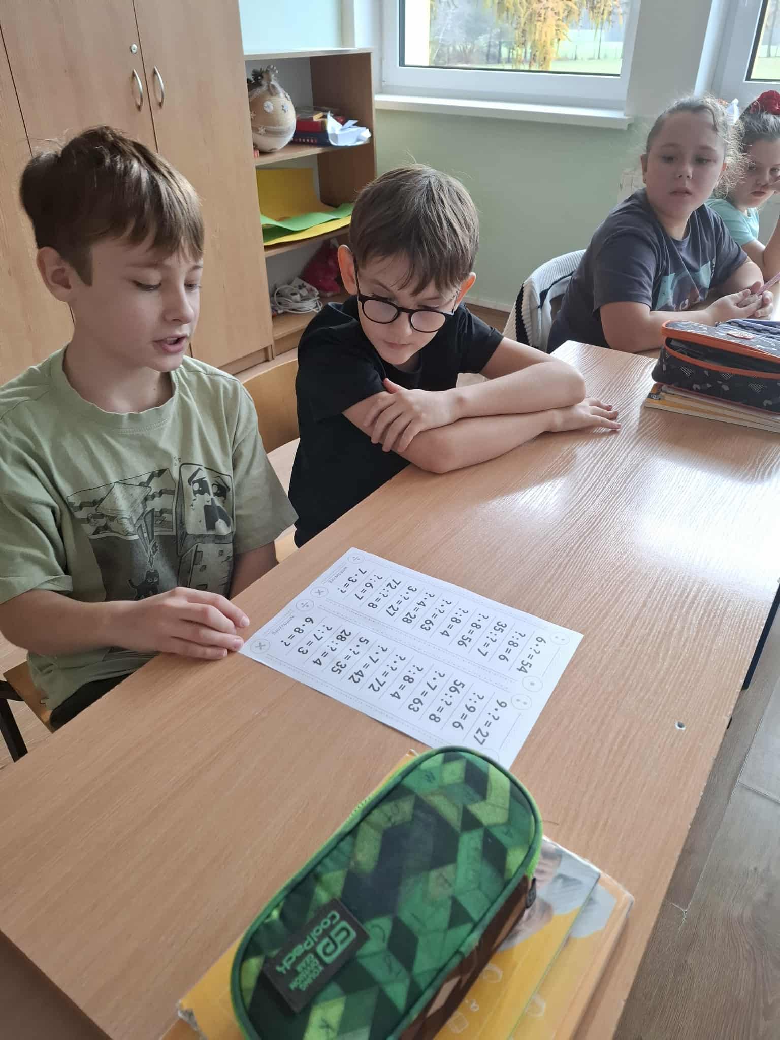 Takie formy pracy sprawiły, że uczniowie z zaangażowaniem powtarzali i utrwalali materiał, a jednocześnie przekonali się, że matematyka może być nie tylko pożyteczna, ale też pełna radości i satysfakcji. Kulminacyjnym punktem tygodnia był egzamin z tabliczki mnożenia, który uczniowie klas 4–8 pisali podczas lekcji matematyki. Każdy miał okazję sprawdzić swoją wiedzę i zmierzyć się z zadaniami o różnym stopniu trudności. Uczniowie, którzy poradzili sobie bezbłędnie, zdobyli zaszczytny tytuł Eksperta Tabliczki Mnożenia oraz otrzymali pamiątkowe certyfikaty.