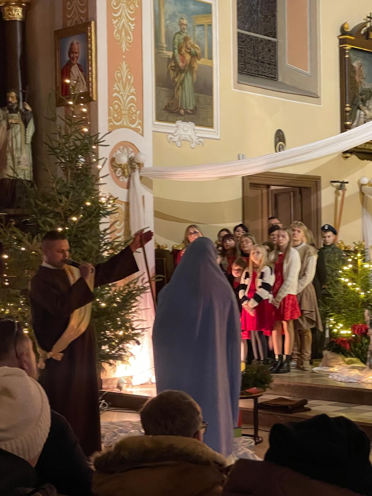 W wigilijny wieczór, tuż przed tradycyjną Pasterką, społeczność naszej szkoły zaprezentowała jasełka w Kościele Parafialnym w Skrwilnie. W ten sposób przekaz płynący z przedstawienia miał szansę dotrzeć do szerszej publiczności czyli do parafian. Przedsięwzięcie to zostało przygotowane z udziałem uczniów, nauczycieli i pracowników Szkoły Podstawowej w Skudzawach. Wyjątkowa atmosfera wigilijnego wieczoru i historia ukazująca cud Bożego Narodzenia, niezmiennie wzrusza i przyczynia się do duchowego przeżywania świąt.