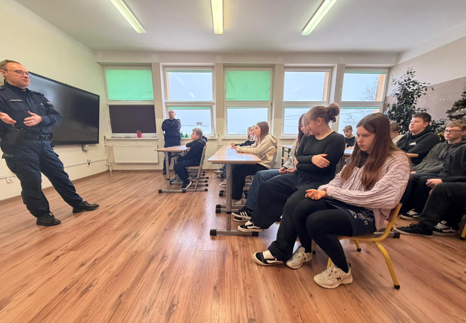 W dniu 16 stycznia 2026 r. w szkole odbyło się spotkanie profilaktyczne uczniów klas IV–VIII z funkcjonariuszami Policji. Tematem spotkania było bezpieczne spędzanie ferii zimowych oraz odpowiedzialne korzystanie z Internetu.