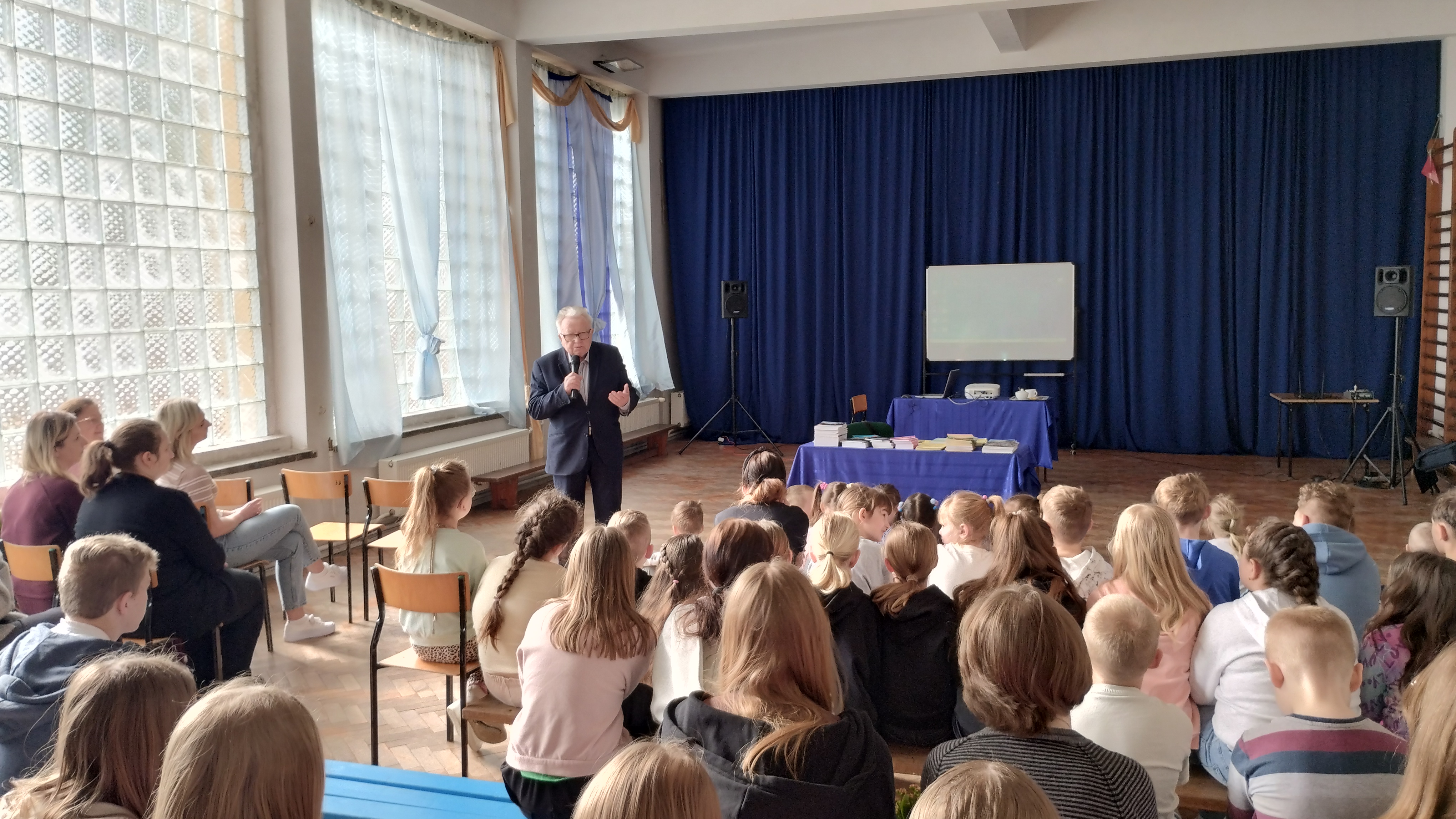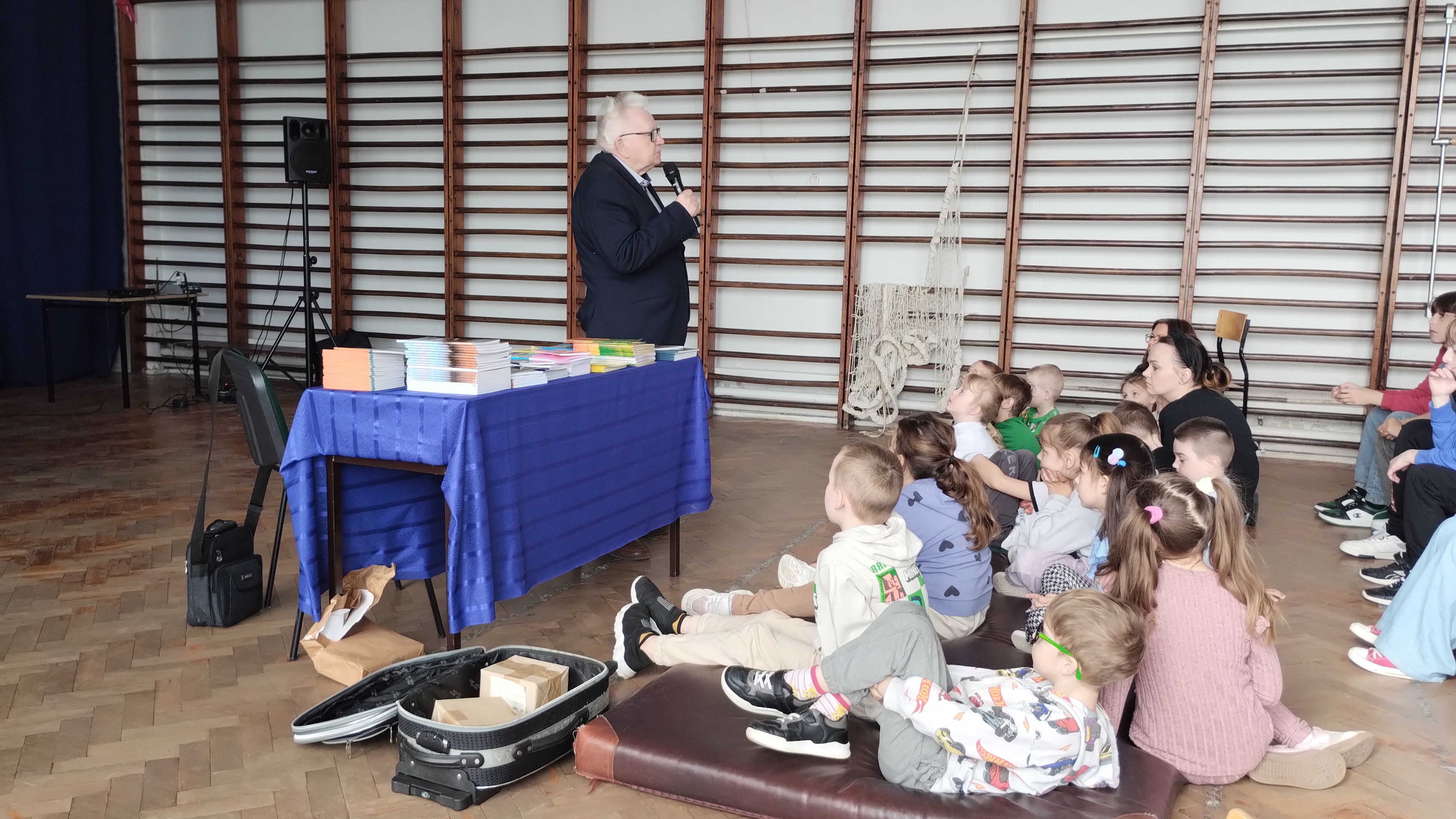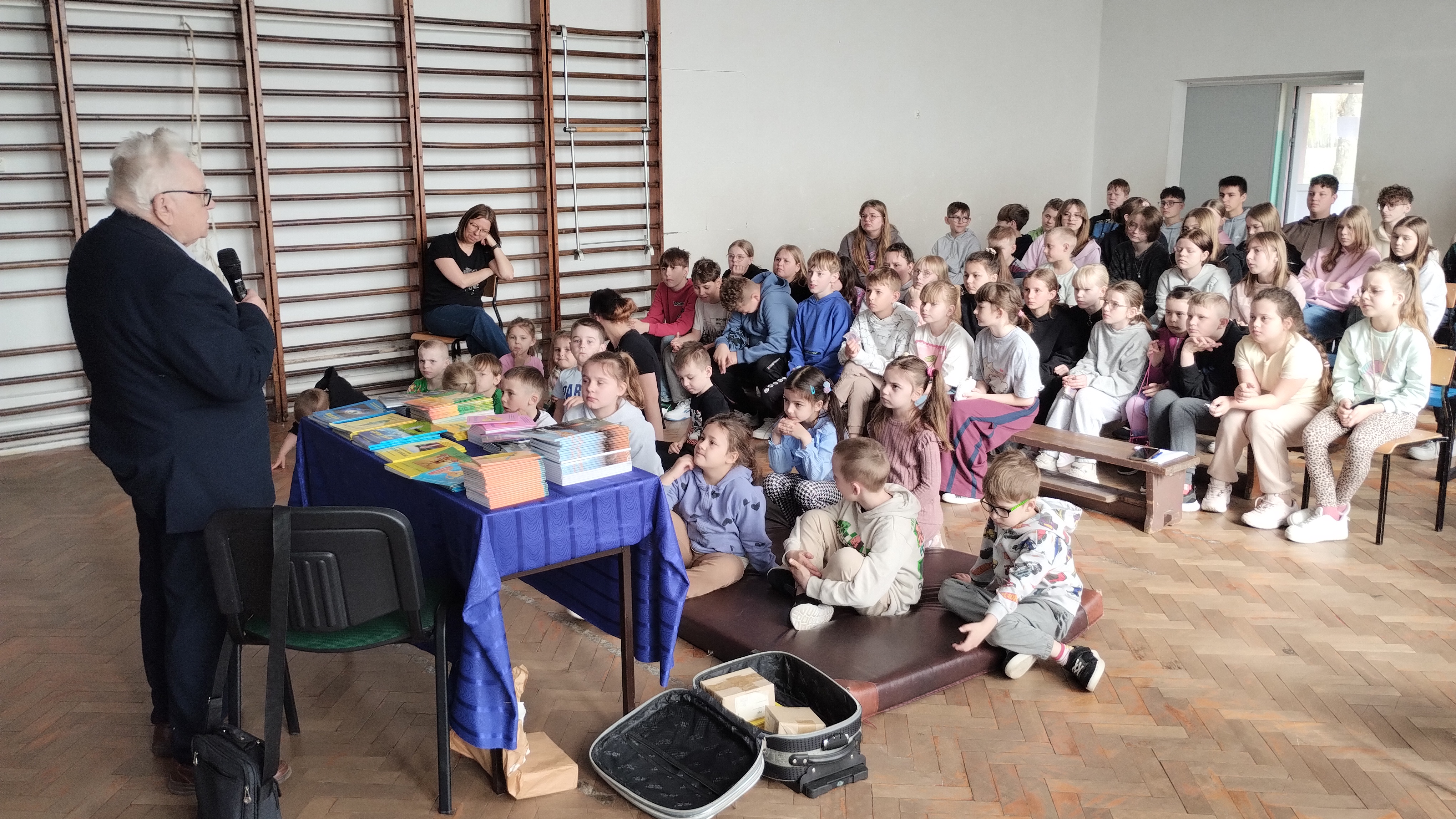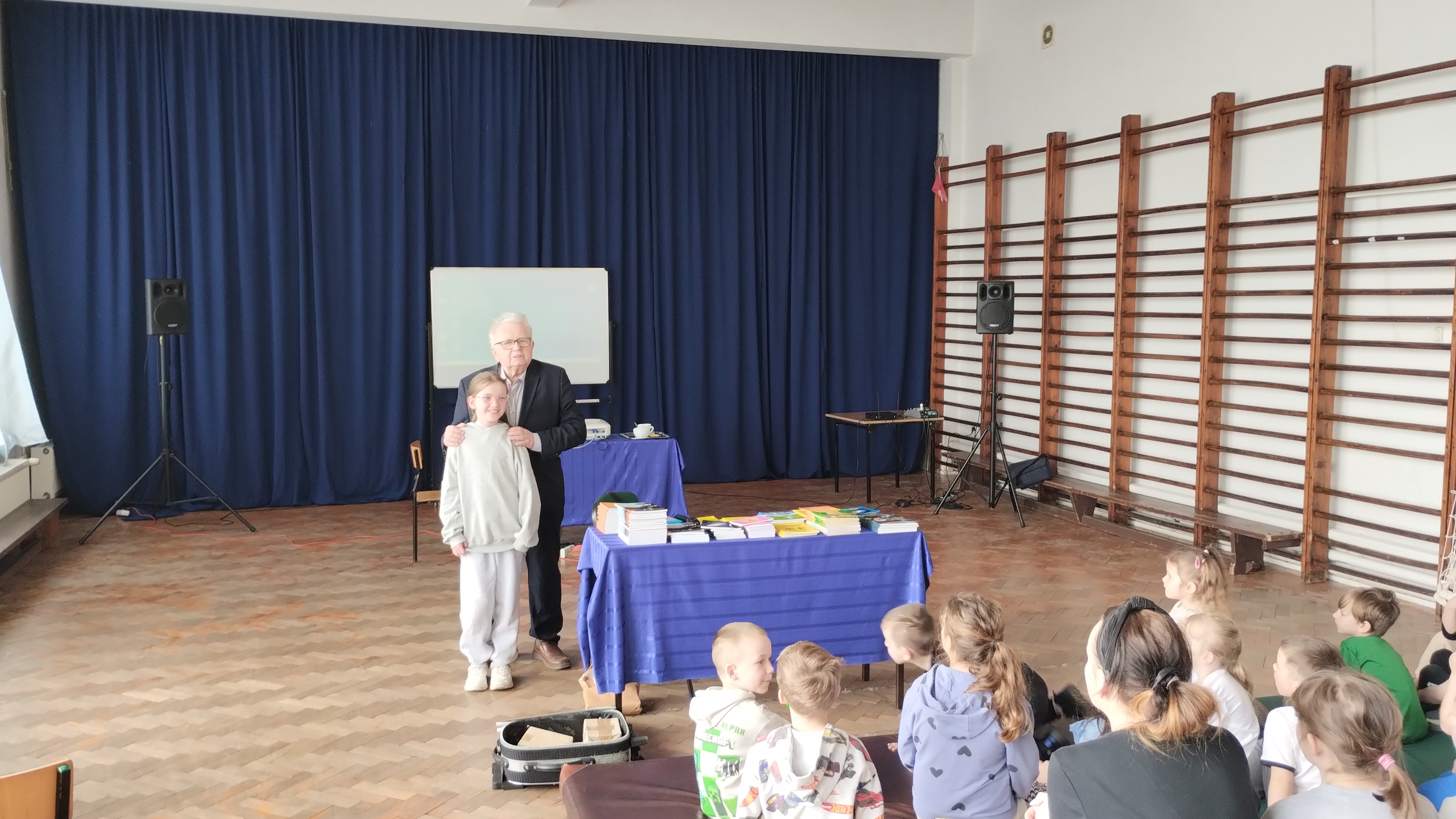 W dniu 24.04.2026 roku w Szkole Podstawowej w Skudzawach odbyło się wyjątkowe spotkanie autorskie z panem Tadeuszem Bogackim – cenionym pisarzem i autorem książek dla dzieci i młodzieży. W wydarzeniu wzięli udział uczniowie różnych klas, którzy z dużym zainteresowaniem i entuzjazmem uczestniczyli w przygotowanym spotkaniu.