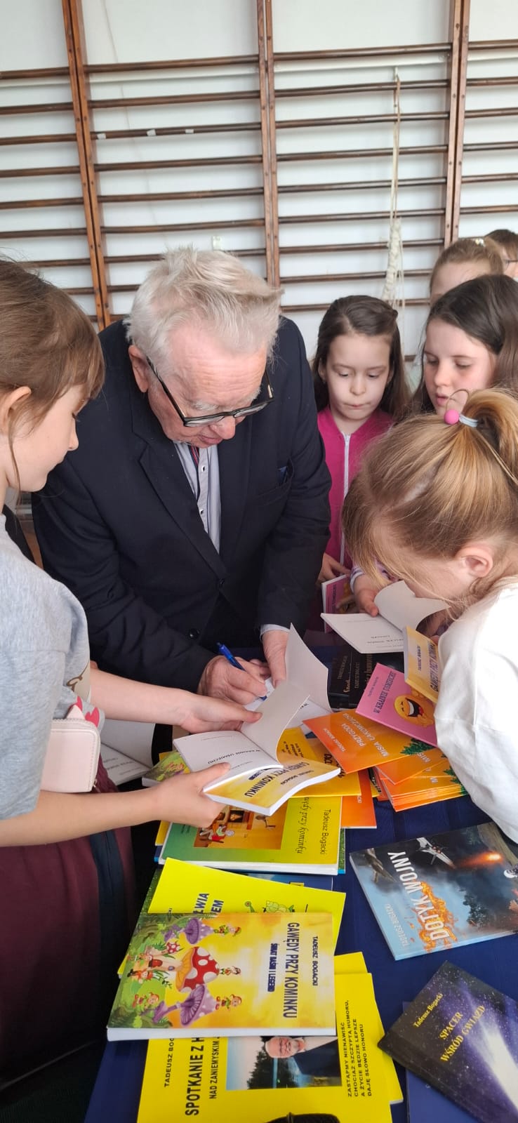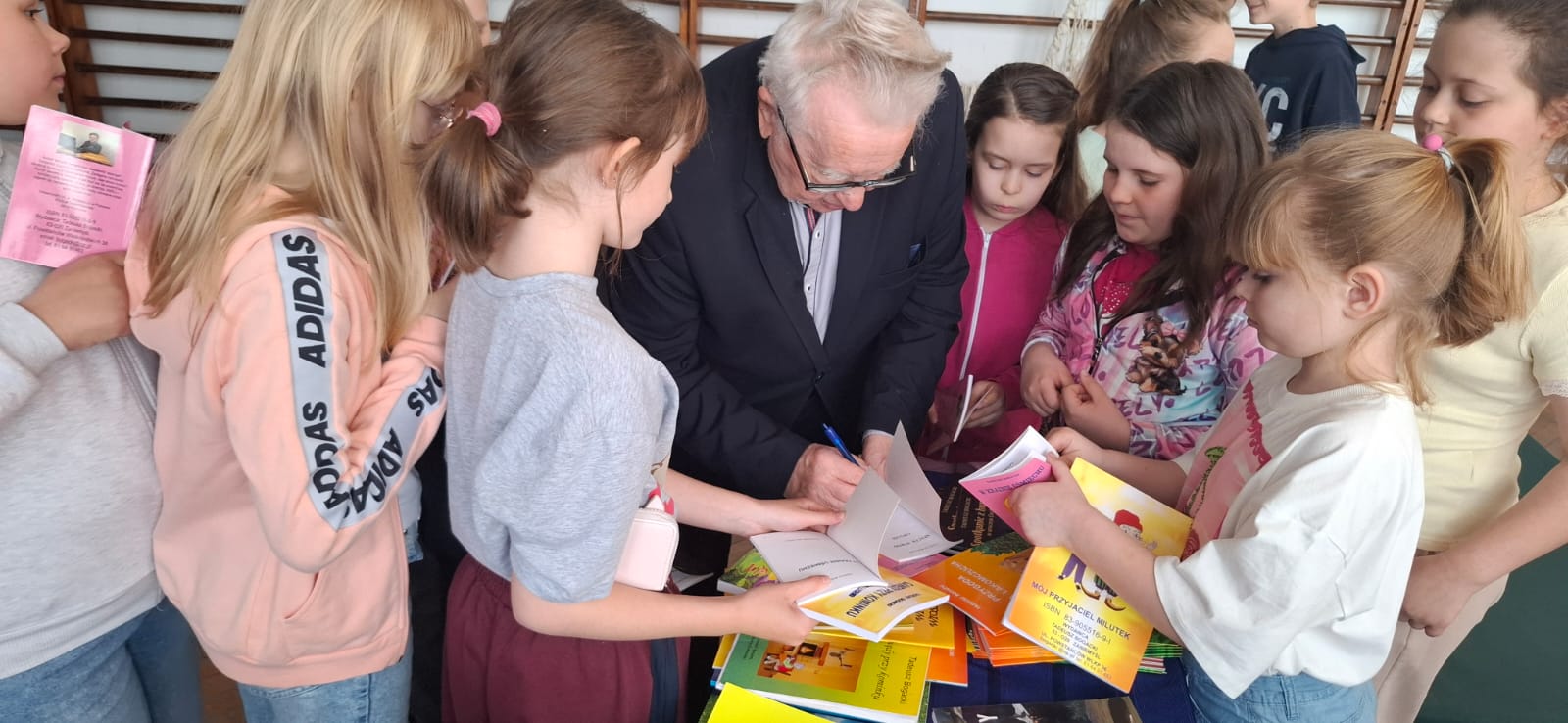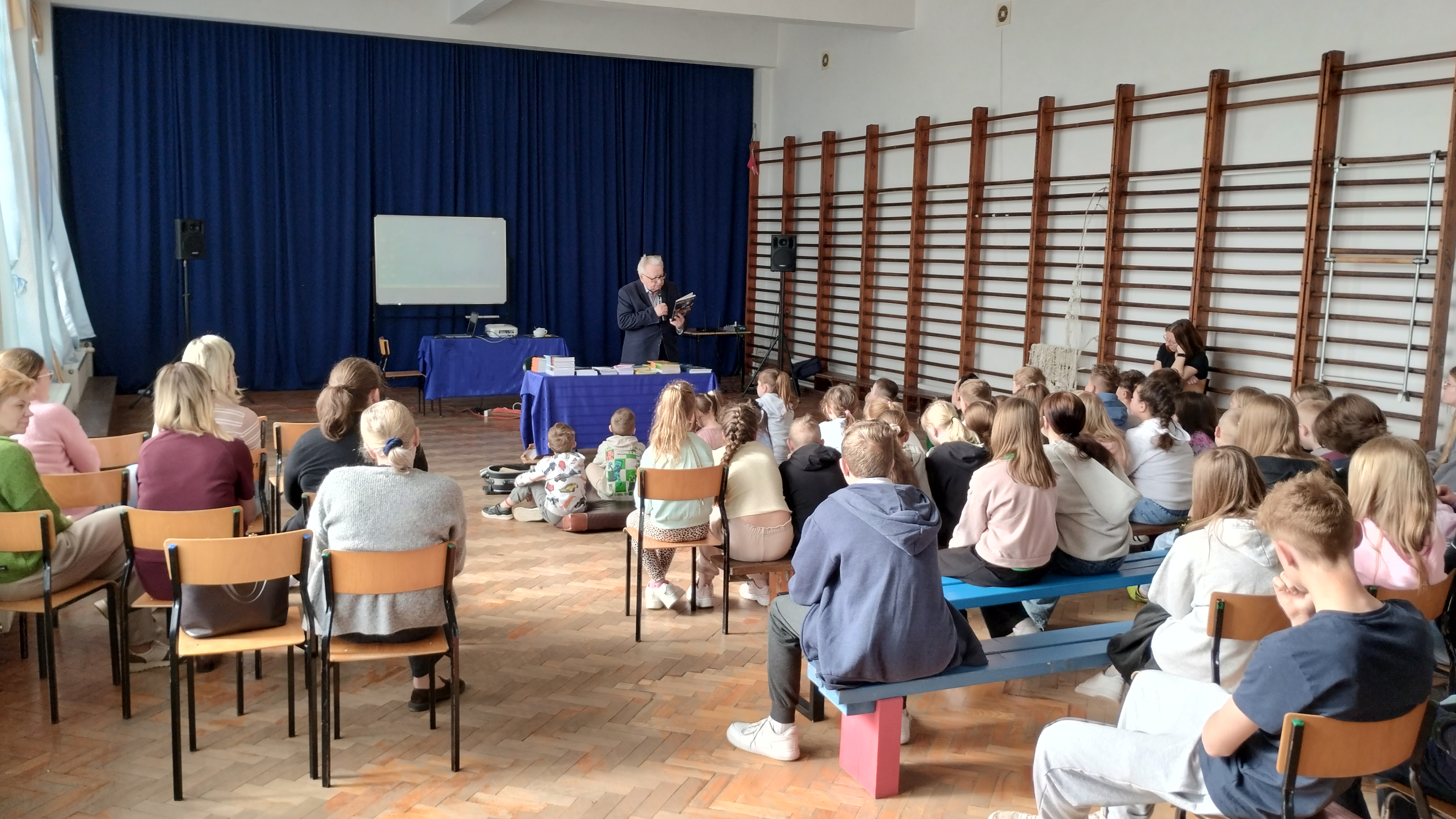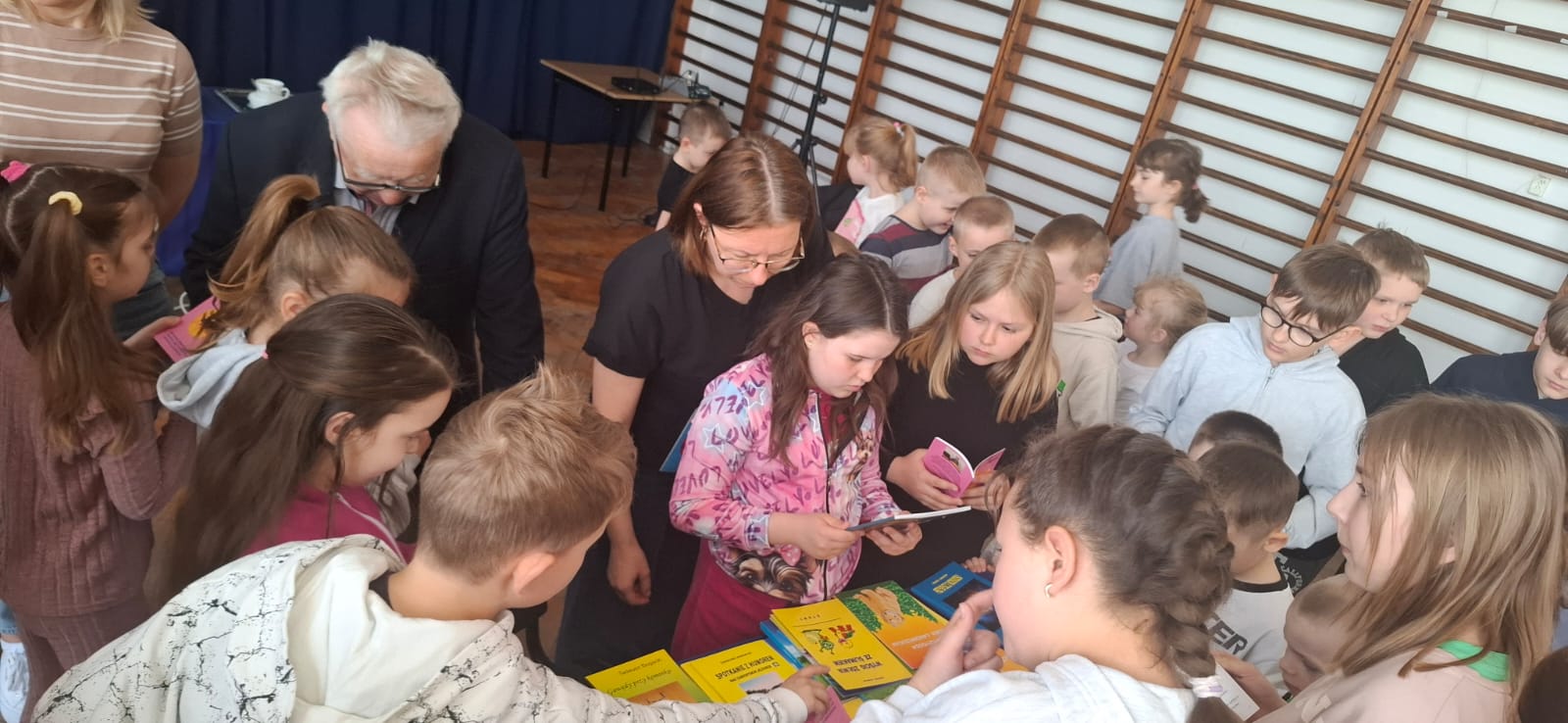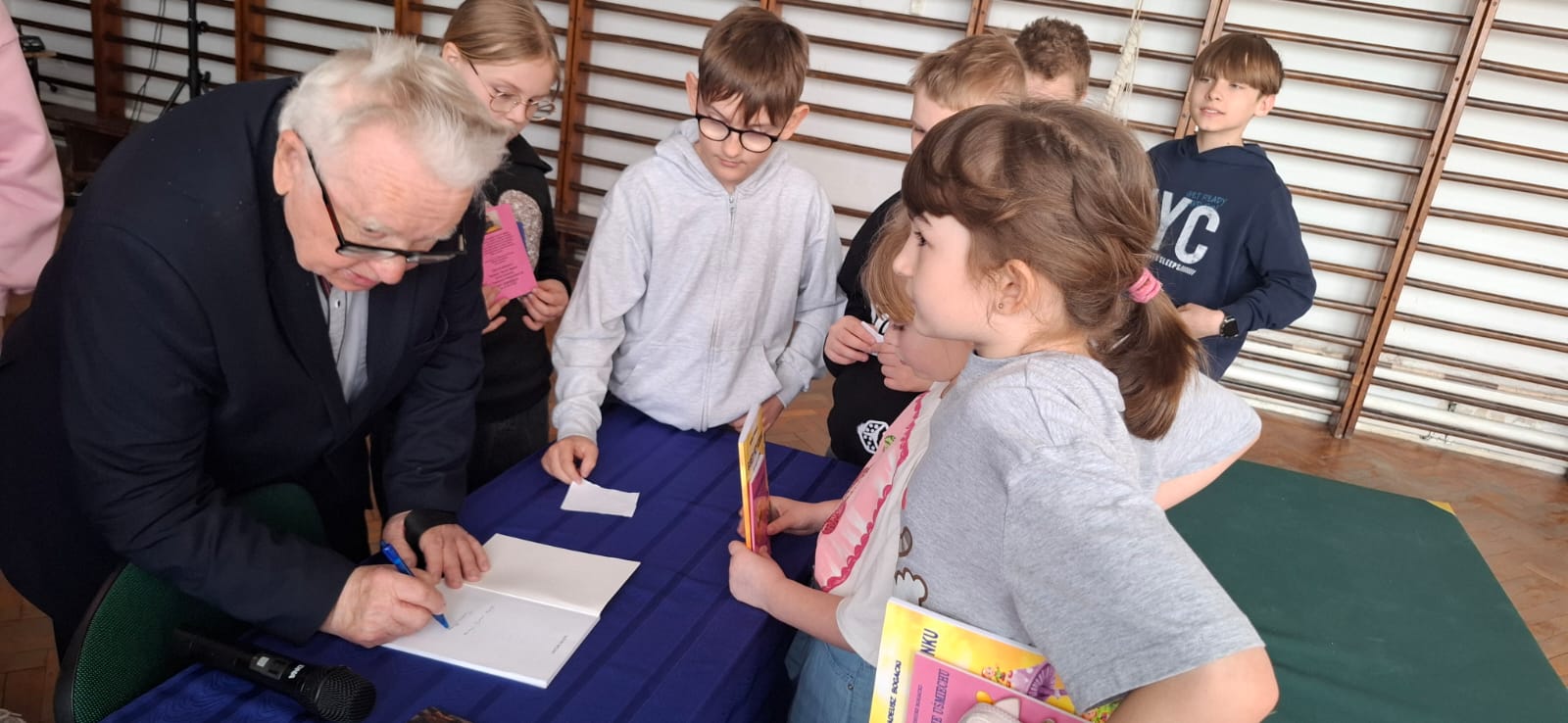 W dniu 24.04.2026 roku w Szkole Podstawowej w Skudzawach odbyło się wyjątkowe spotkanie autorskie z panem Tadeuszem Bogackim – cenionym pisarzem i autorem książek dla dzieci i młodzieży. W wydarzeniu wzięli udział uczniowie różnych klas, którzy z dużym zainteresowaniem i entuzjazmem uczestniczyli w przygotowanym spotkaniu.