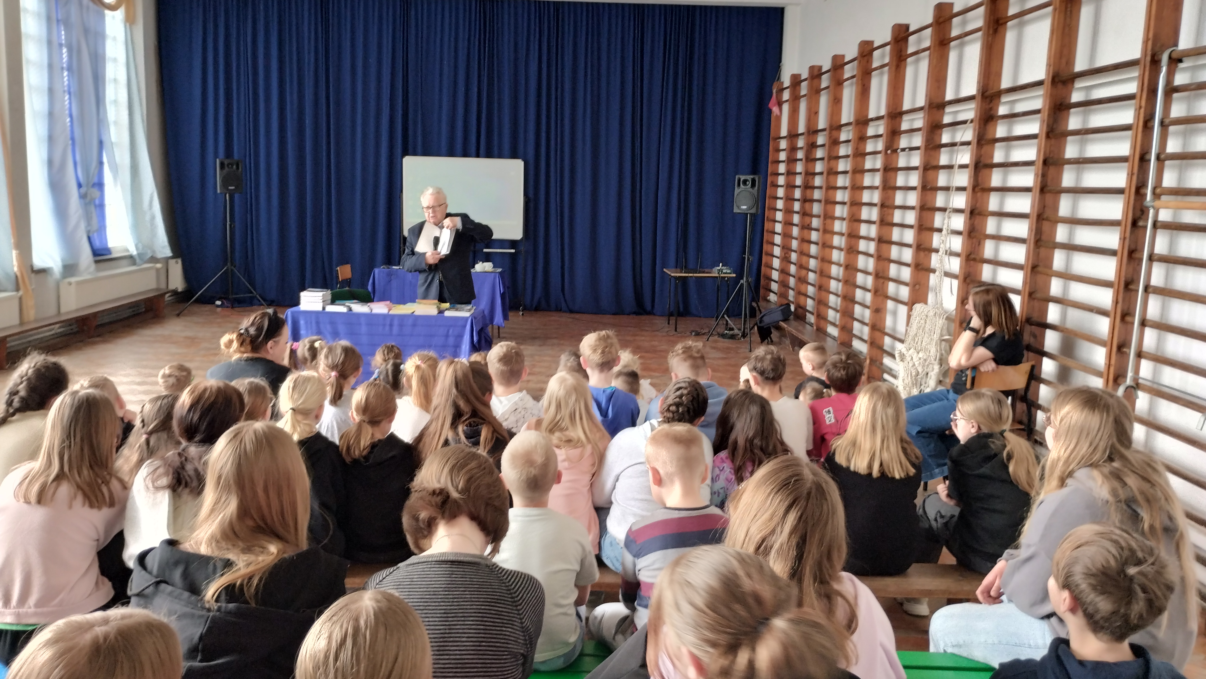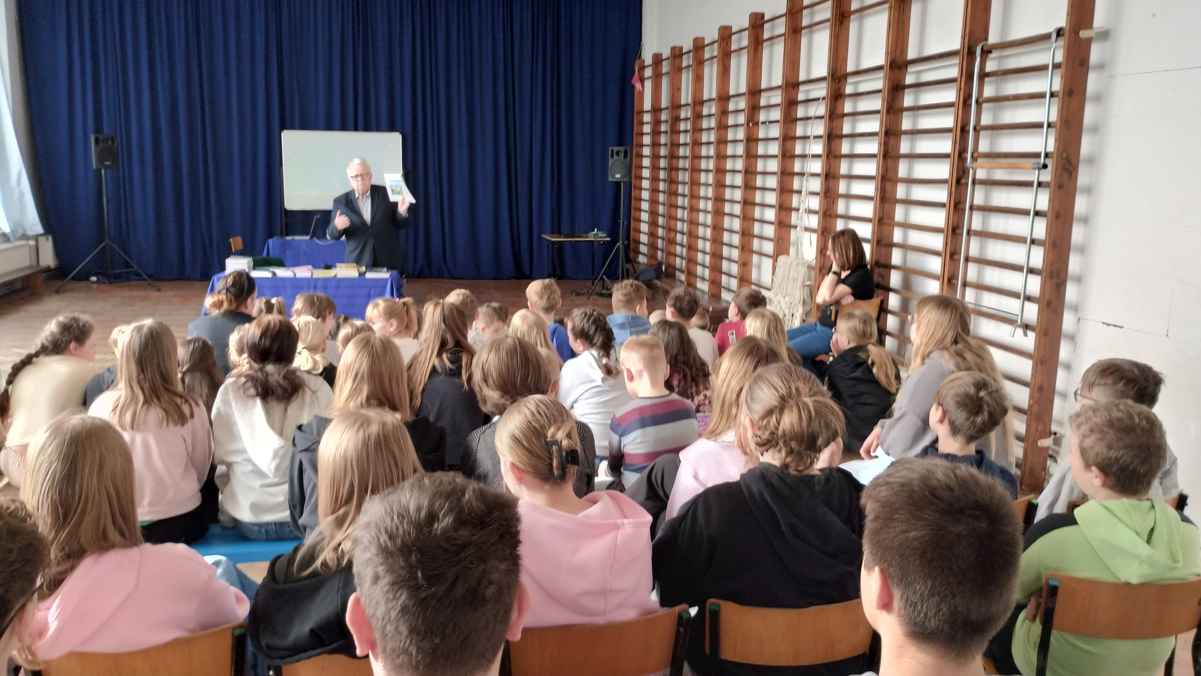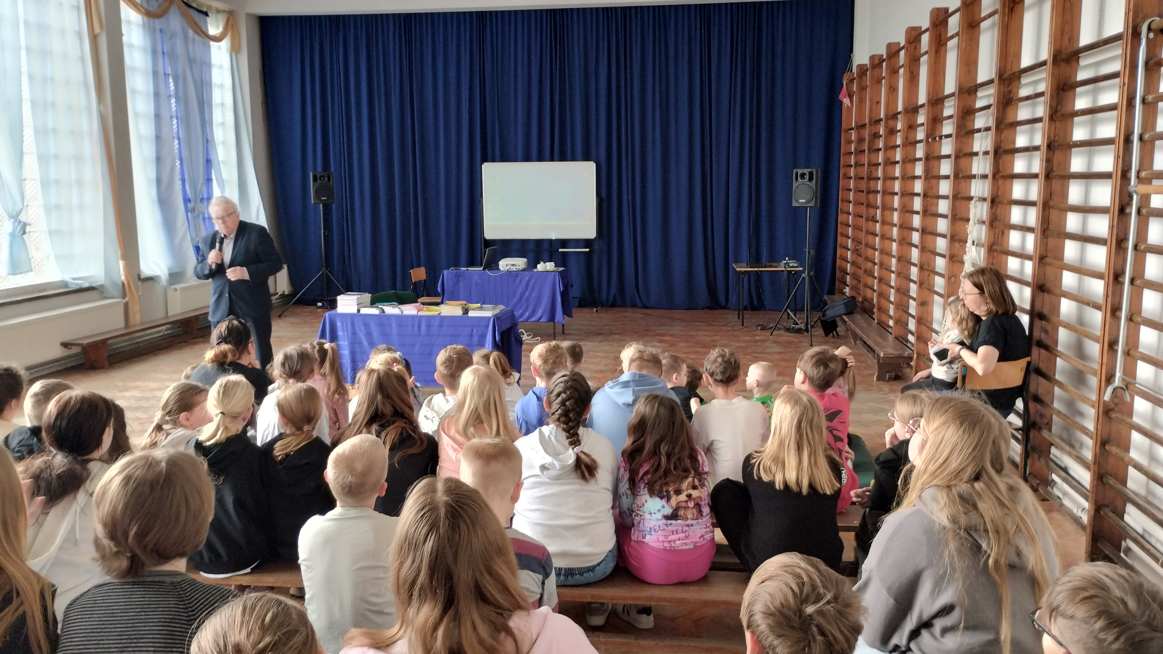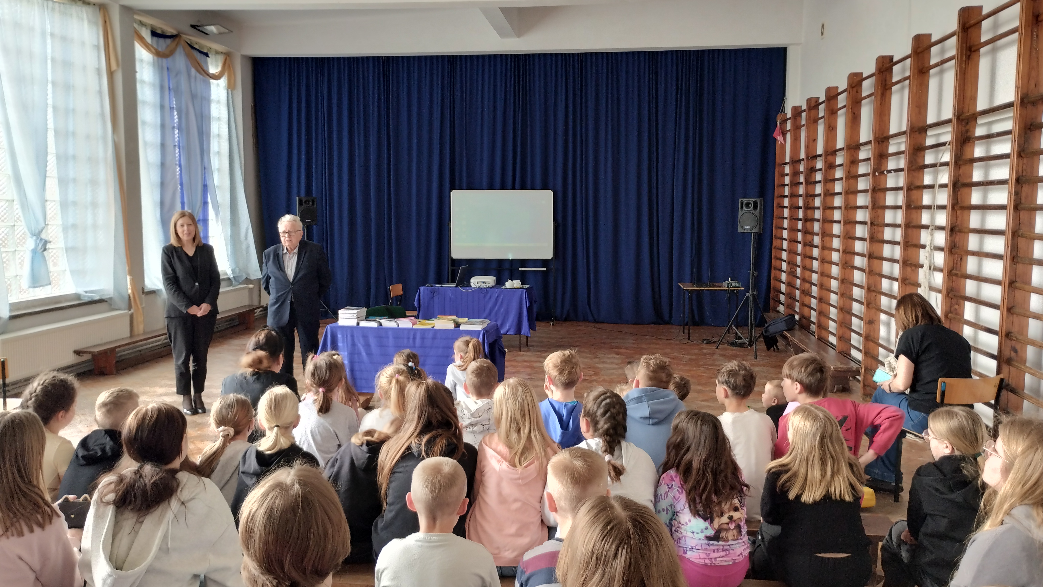 W dniu 24.04.2026 roku w Szkole Podstawowej w Skudzawach odbyło się wyjątkowe spotkanie autorskie z panem Tadeuszem Bogackim – cenionym pisarzem i autorem książek dla dzieci i młodzieży. W wydarzeniu wzięli udział uczniowie różnych klas, którzy z dużym zainteresowaniem i entuzjazmem uczestniczyli w przygotowanym spotkaniu.