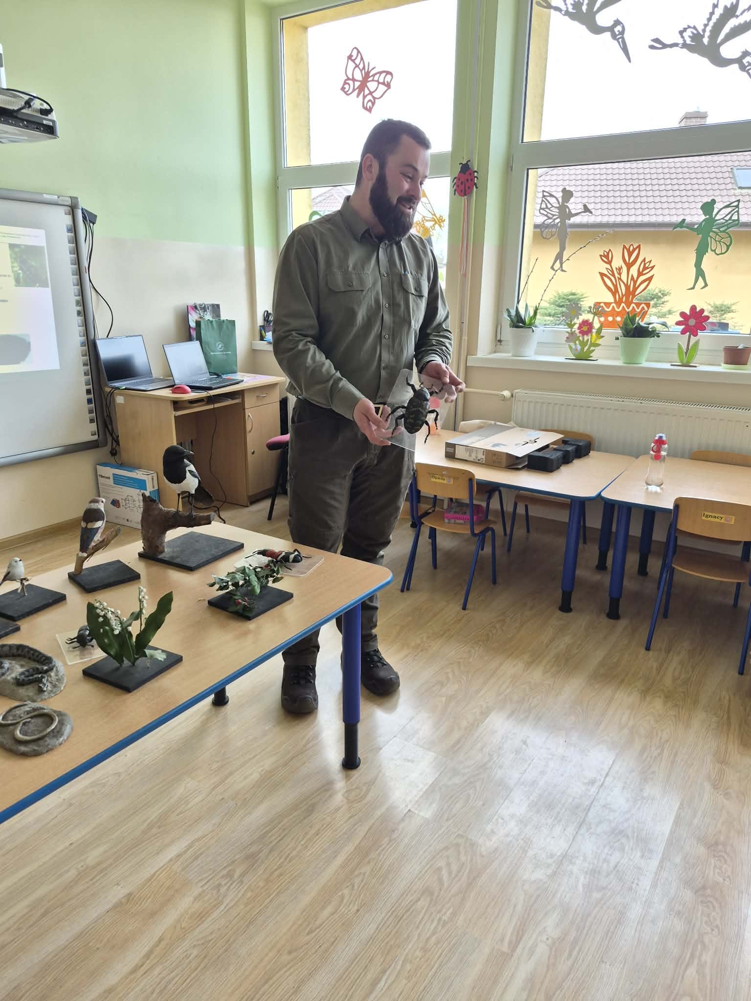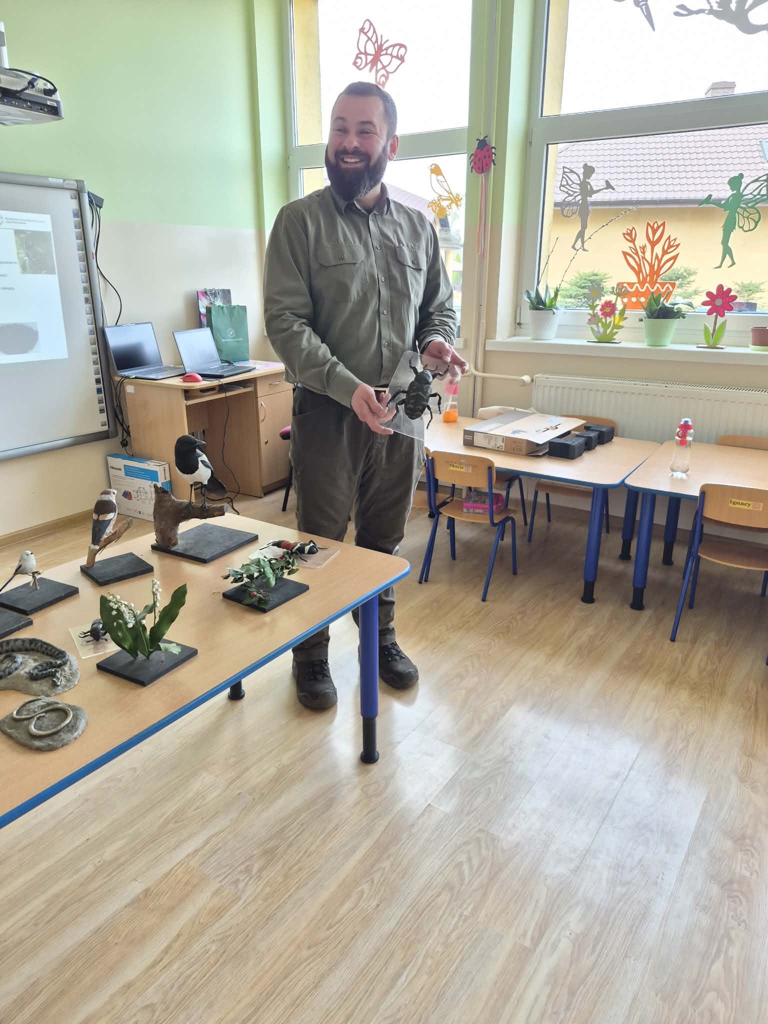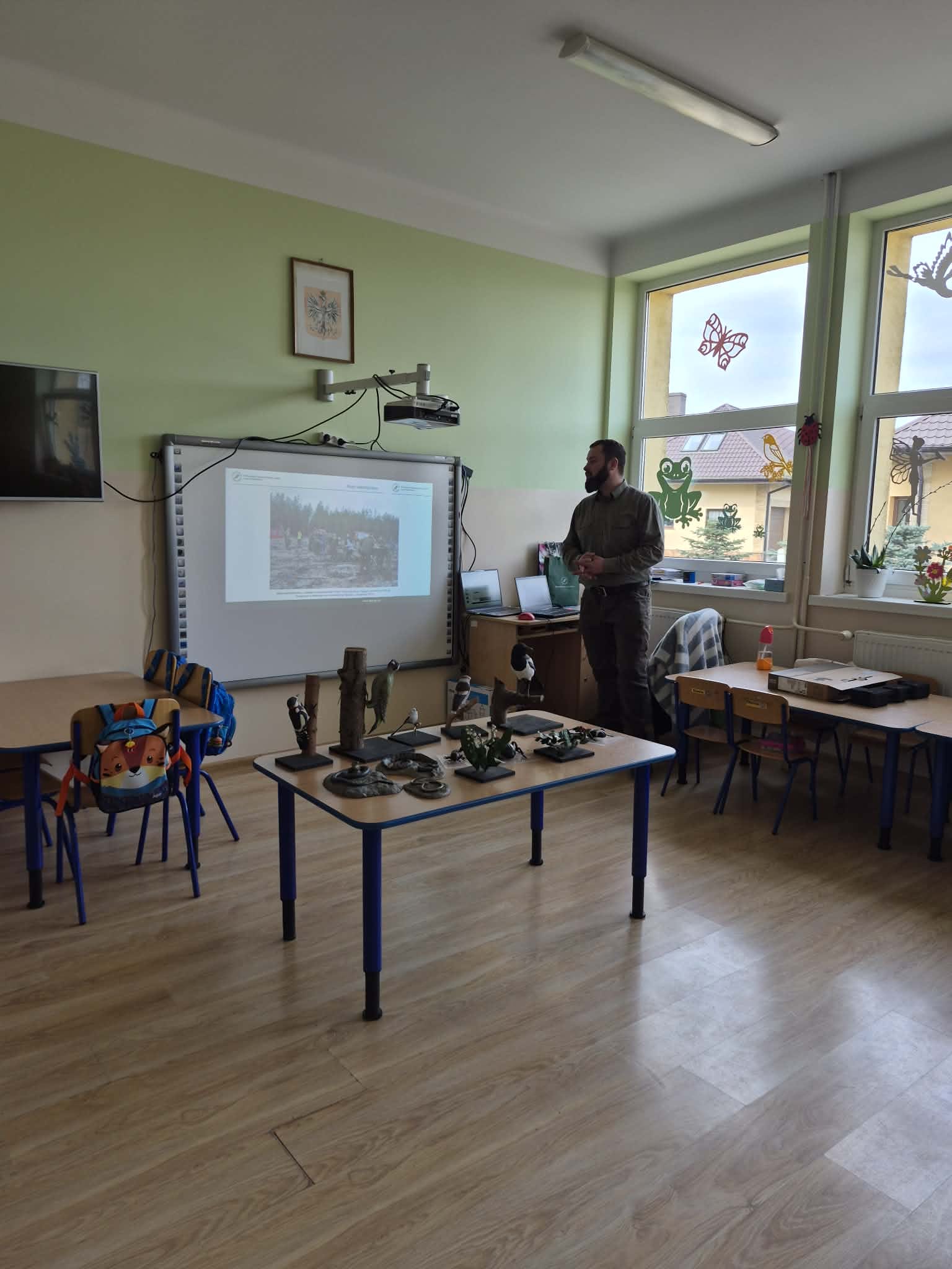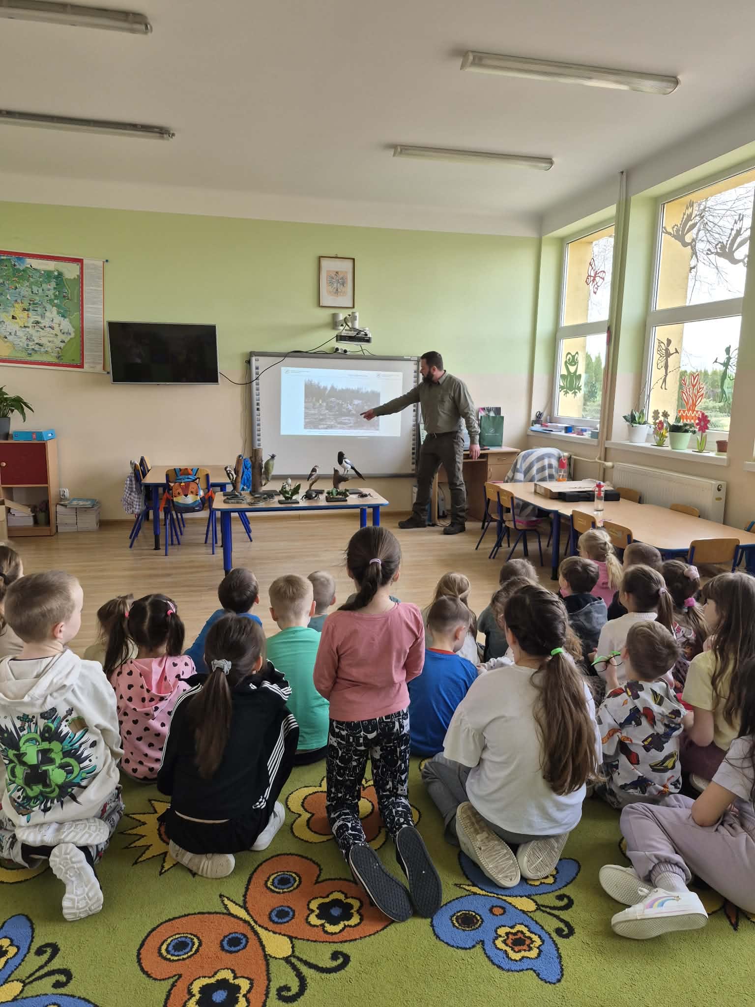 24 marca przedszkolaki oraz uczniowie klas 1–3 uczestniczyli w wyjątkowym spotkaniu z panem Maciejem – leśnikiem. Zajęcia z edukacji przyrodniczo-leśnej były doskonałą okazją do poszerzenia wiedzy o otaczającej nas przyrodzie.