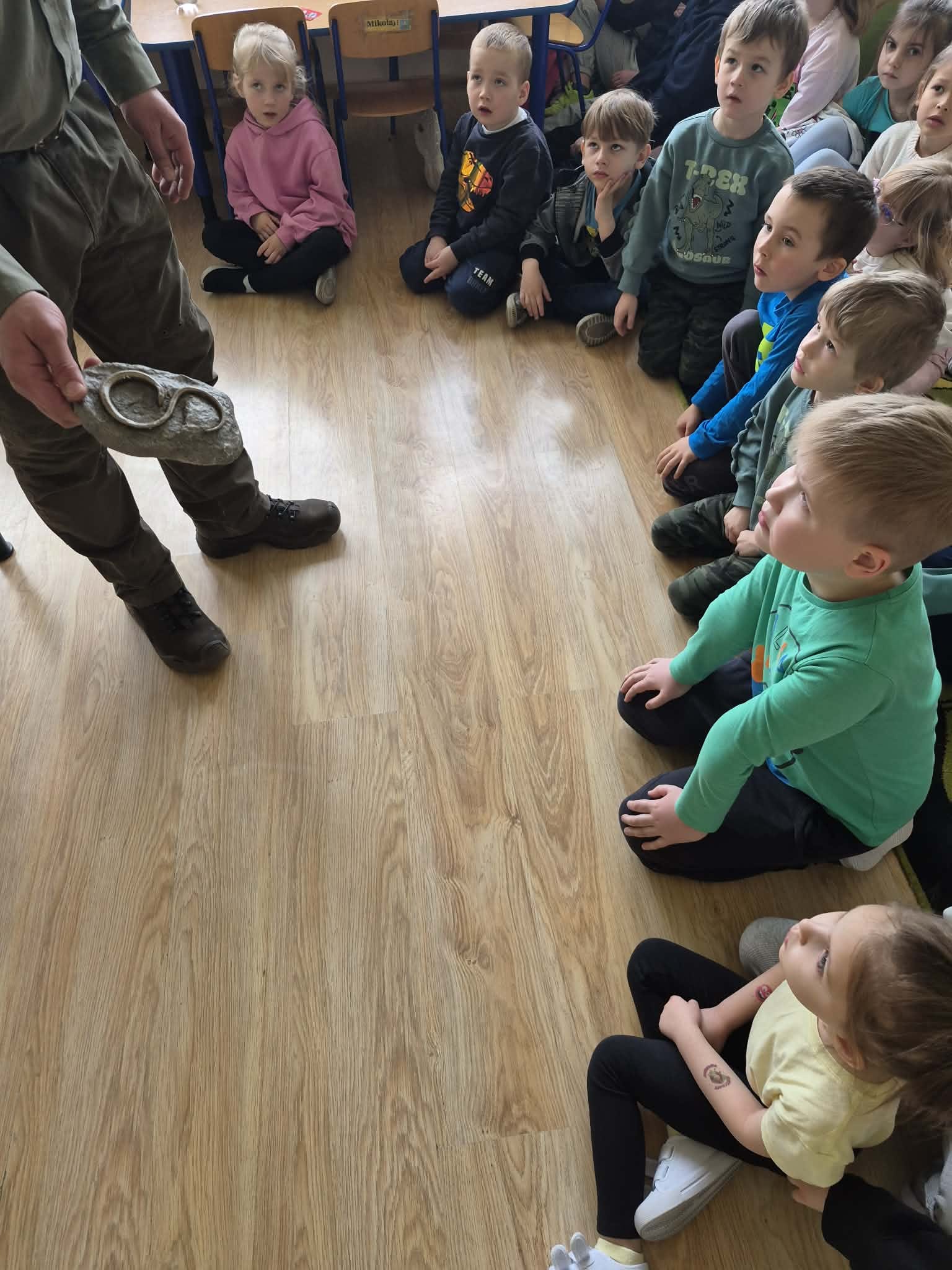 Spotkanie miało charakter interaktywny – uczniowie chętnie zadawali pytania, dzięki czemu mogli lepiej poznać zawód leśnika i jego codzienną pracę.