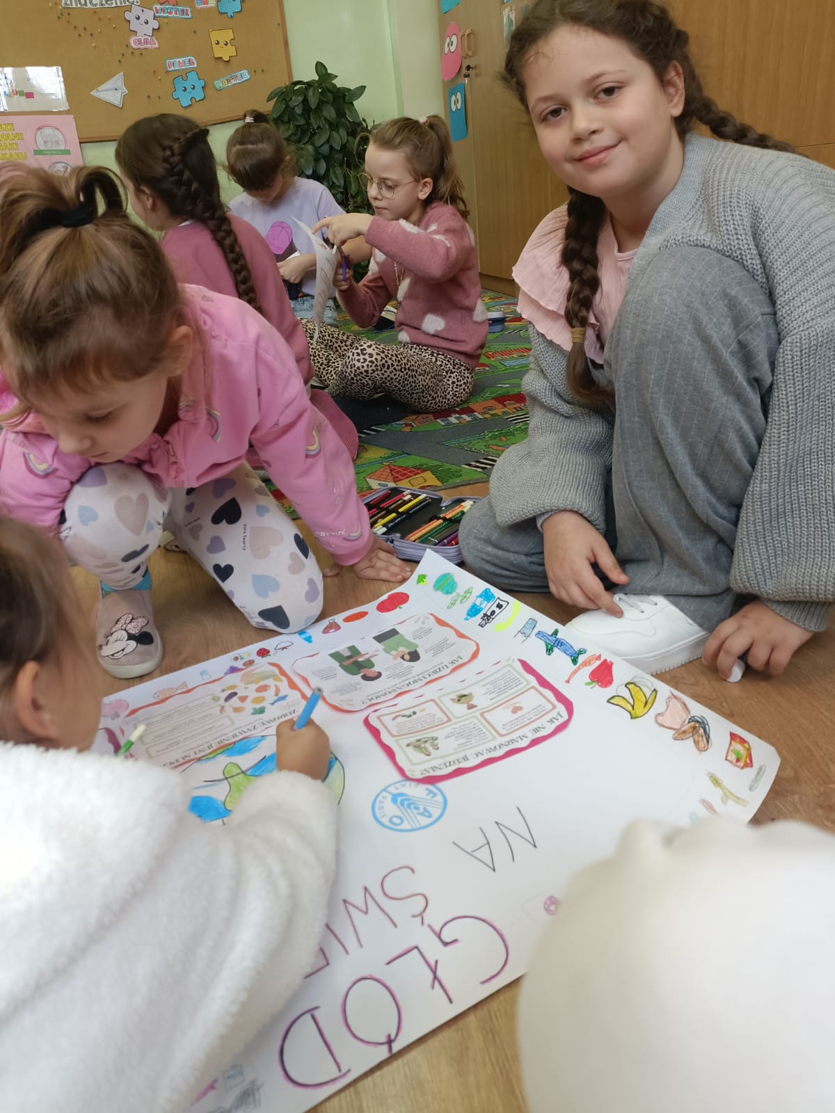 Tegoroczna edycja Tygodnia Edukacji Globalnej odbyła się pod hasłem „Działanie daje nadzieję”. Po raz pierwszy wzięliśmy udział w tym projekcie, którego celem jest zwrócenie uwagi na globalne problemy, współzależności między ludźmi na świecie oraz rolę każdego obywatela w ich rozwiązywaniu. Ważnym zadaniem projektu jest również podkreślenie znaczenia podejmowania działań na rzecz bardziej sprawiedliwej i zrównoważonej przyszłości. W wydarzeniu uczestniczyły klasy I–VIII. Jednym z pierwszych zadań uczniów było zapoznanie się z szerokim wachlarzem zagadnień związanych z edukacją globalną, a następnie wybranie jednego z nich do przygotowania plakatu oraz zebrania jak największej ilości informacji na wybrany temat.Jedna z klas, omawiając temat głodu na świecie orazzrównoważonej konsumpcji, pokusiła się o praktyczne działanie – uczniowie przygotowali zdrowe, pełnowartościowe kanapki, zwracając uwagę na świadome wybory żywieniowe i niemarnowanie jedzenia. Zadanie to stało się okazją do rozmowy o tym, jak codzienne decyzje wpływają na globalny system żywnościowy.
