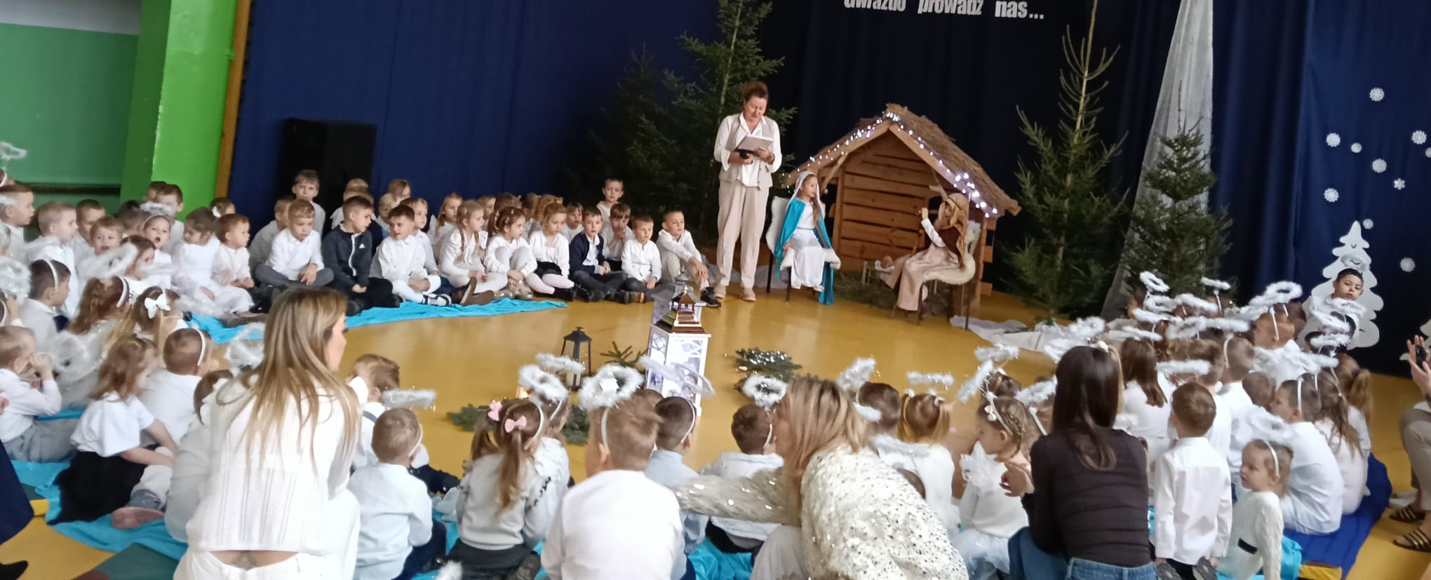 16 grudnia dzieci z naszego oddziału przedszkolnego przeżyły cudowne, pełne radości chwile, wspólnie kolędując z kolegami i koleżankami z Okalewa i Skrwilna. Wspólny śpiew kolęd i pastorałek wprowadził wszystkich w magiczny, świąteczny nastrój.