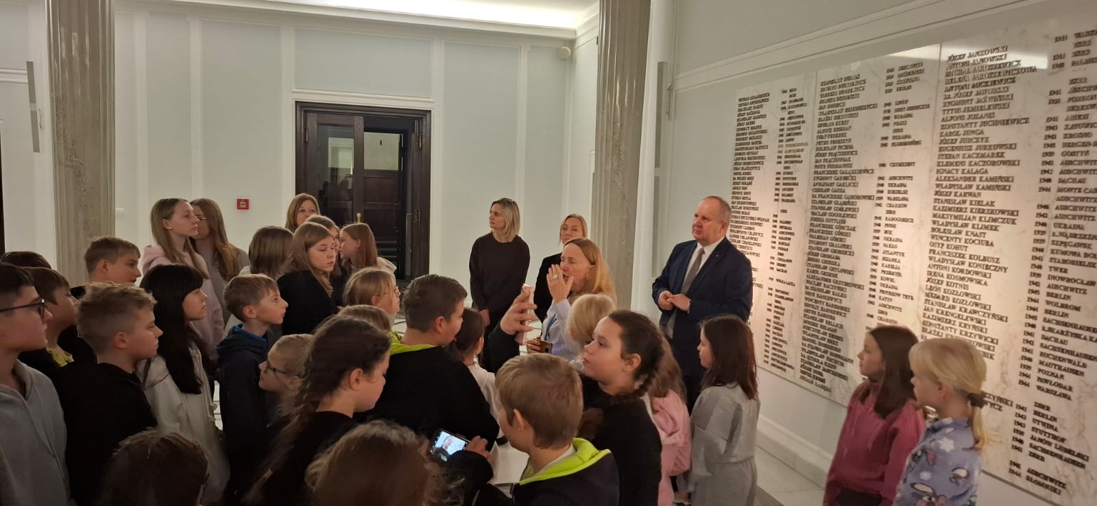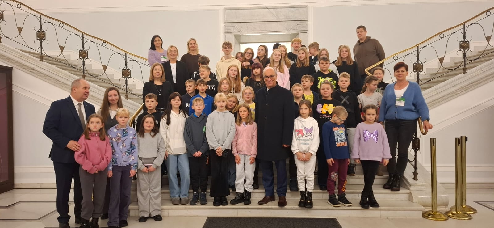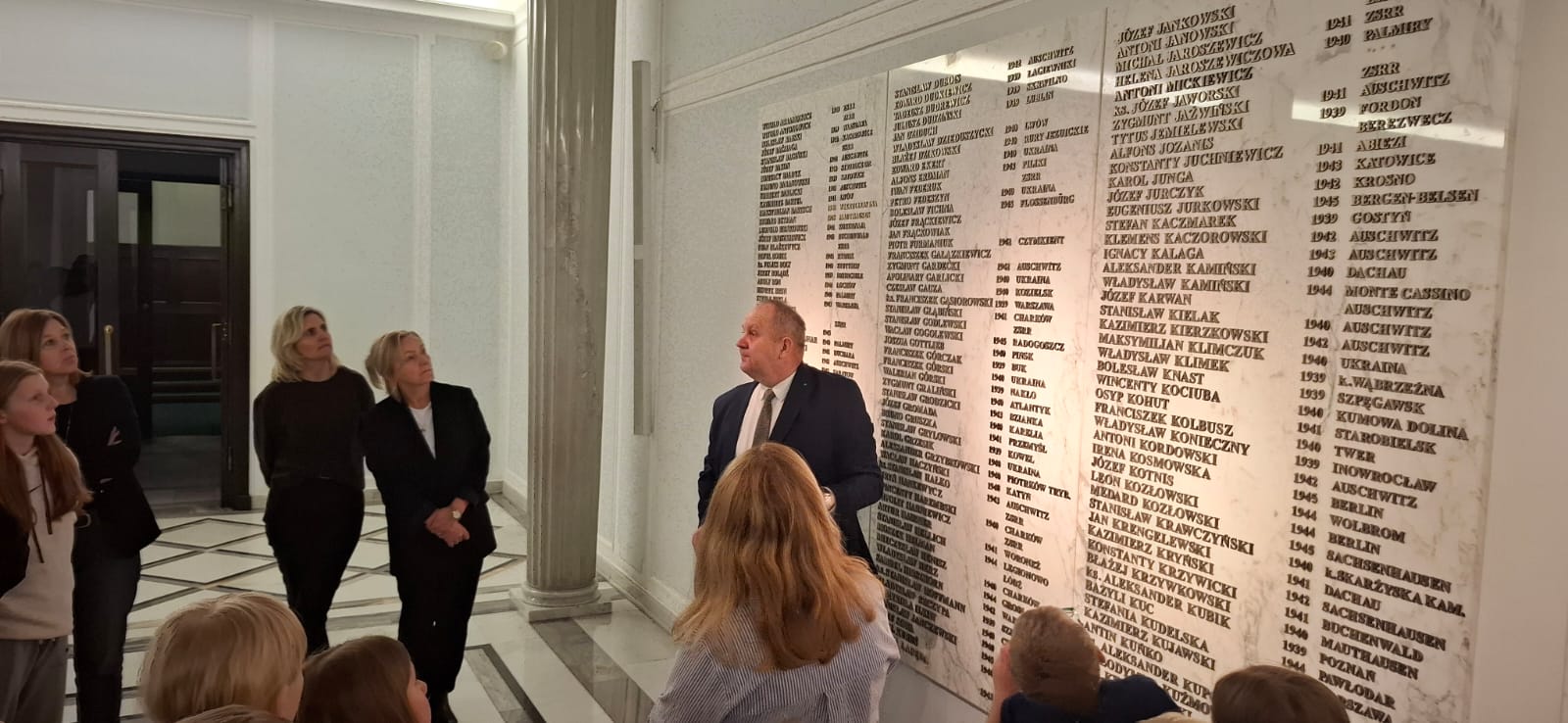 Kolejnym etapem wyjazdu była wizyta w polskim parlamencie. Uczniowie zwiedzili zarówno Sejm, jak i Senat, a po kompleksie parlamentarnym oprowadzał ich poseł Zbigniew Sosnowski. Podczas wizyty opowiadał on o funkcjonowaniu obu izb, codziennej pracy parlamentarzystów oraz znaczeniu procesów demokratycznych w życiu państwa. W trakcie zwiedzania uczniowie mieli również wyjątkową możliwość spotkać Marszałka Sejmu, Włodzimierza Czarzastego, z którym wykonali pamiątkowe zdjęcie.