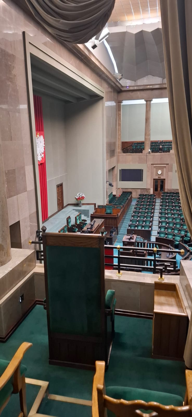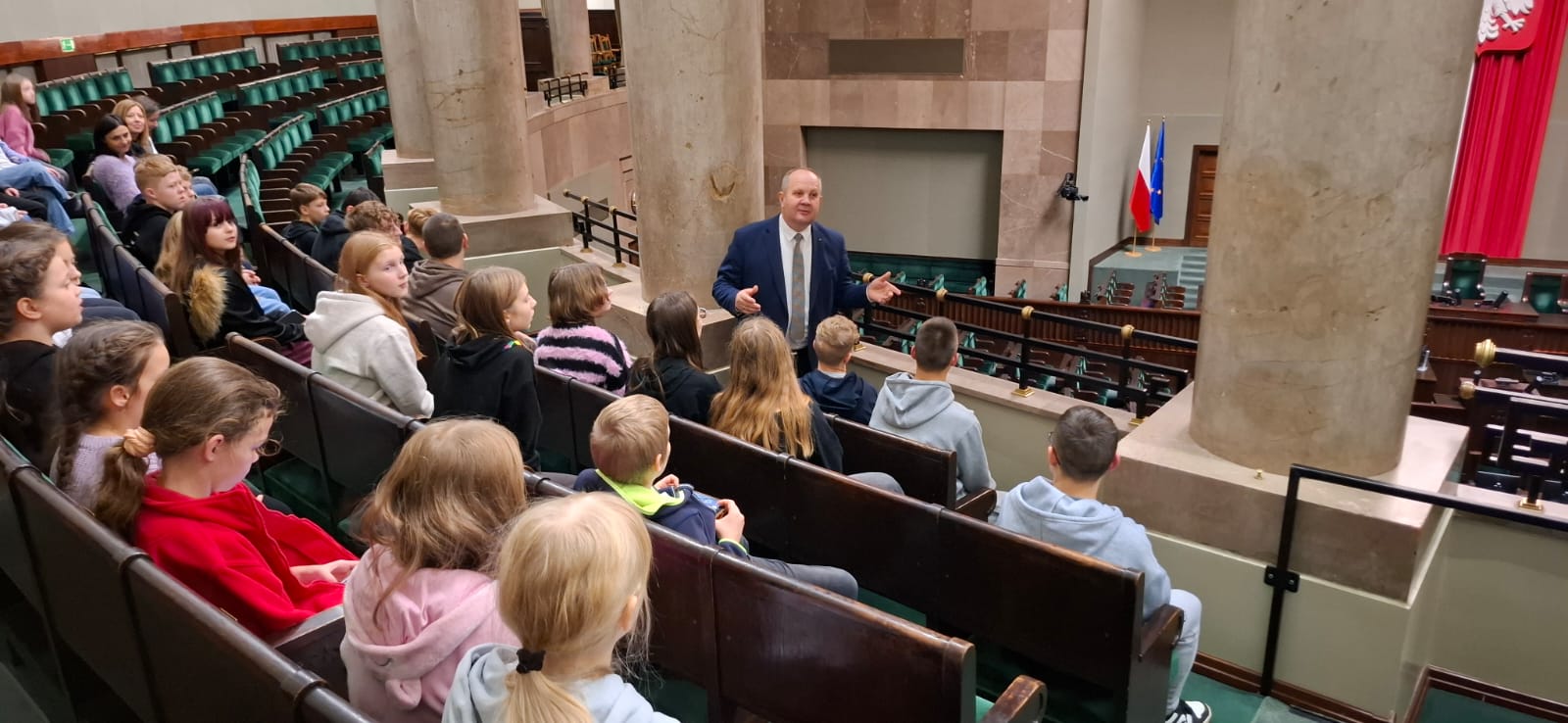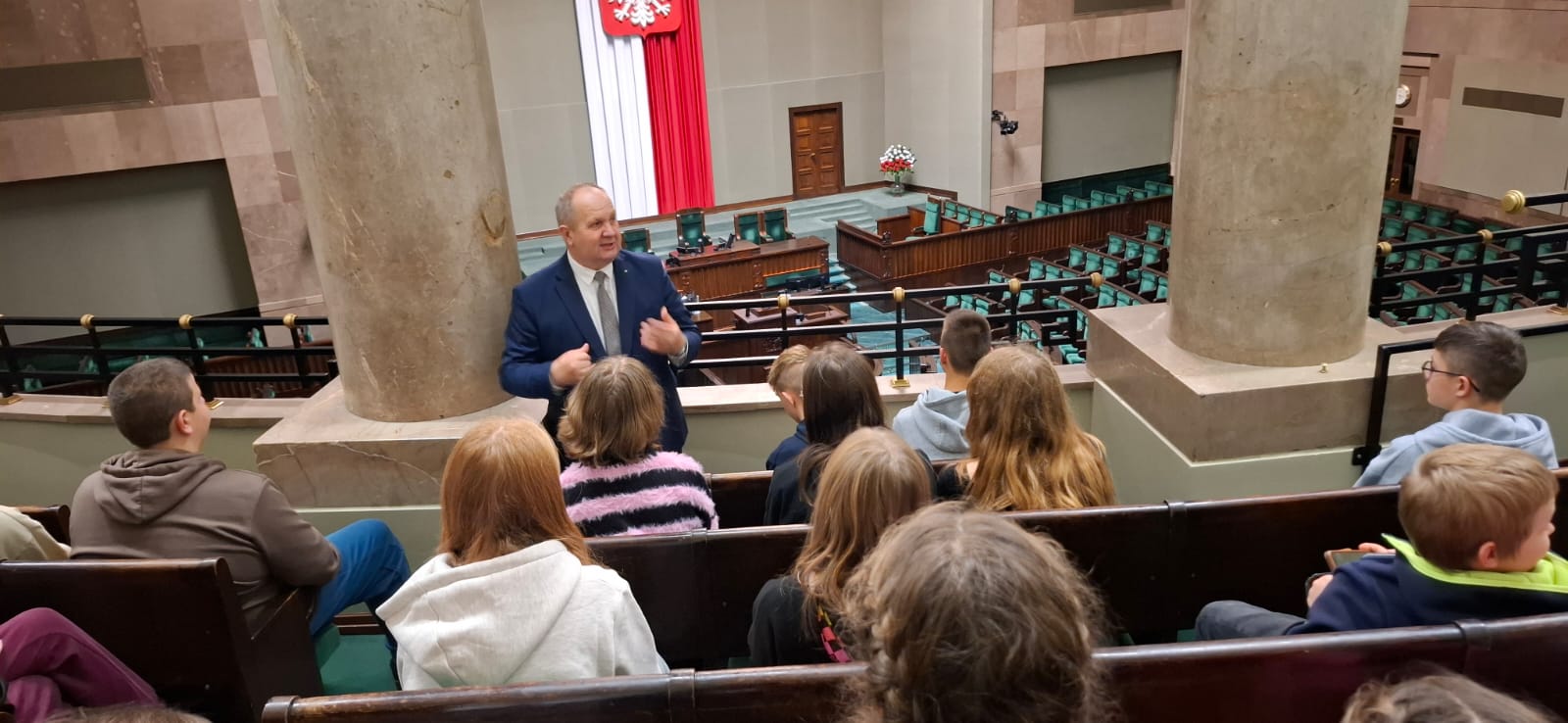Kolejnym etapem wyjazdu była wizyta w polskim parlamencie. Uczniowie zwiedzili zarówno Sejm, jak i Senat, a po kompleksie parlamentarnym oprowadzał ich poseł Zbigniew Sosnowski. Podczas wizyty opowiadał on o funkcjonowaniu obu izb, codziennej pracy parlamentarzystów oraz znaczeniu procesów demokratycznych w życiu państwa. W trakcie zwiedzania uczniowie mieli również wyjątkową możliwość spotkać Marszałka Sejmu, Włodzimierza Czarzastego, z którym wykonali pamiątkowe zdjęcie.