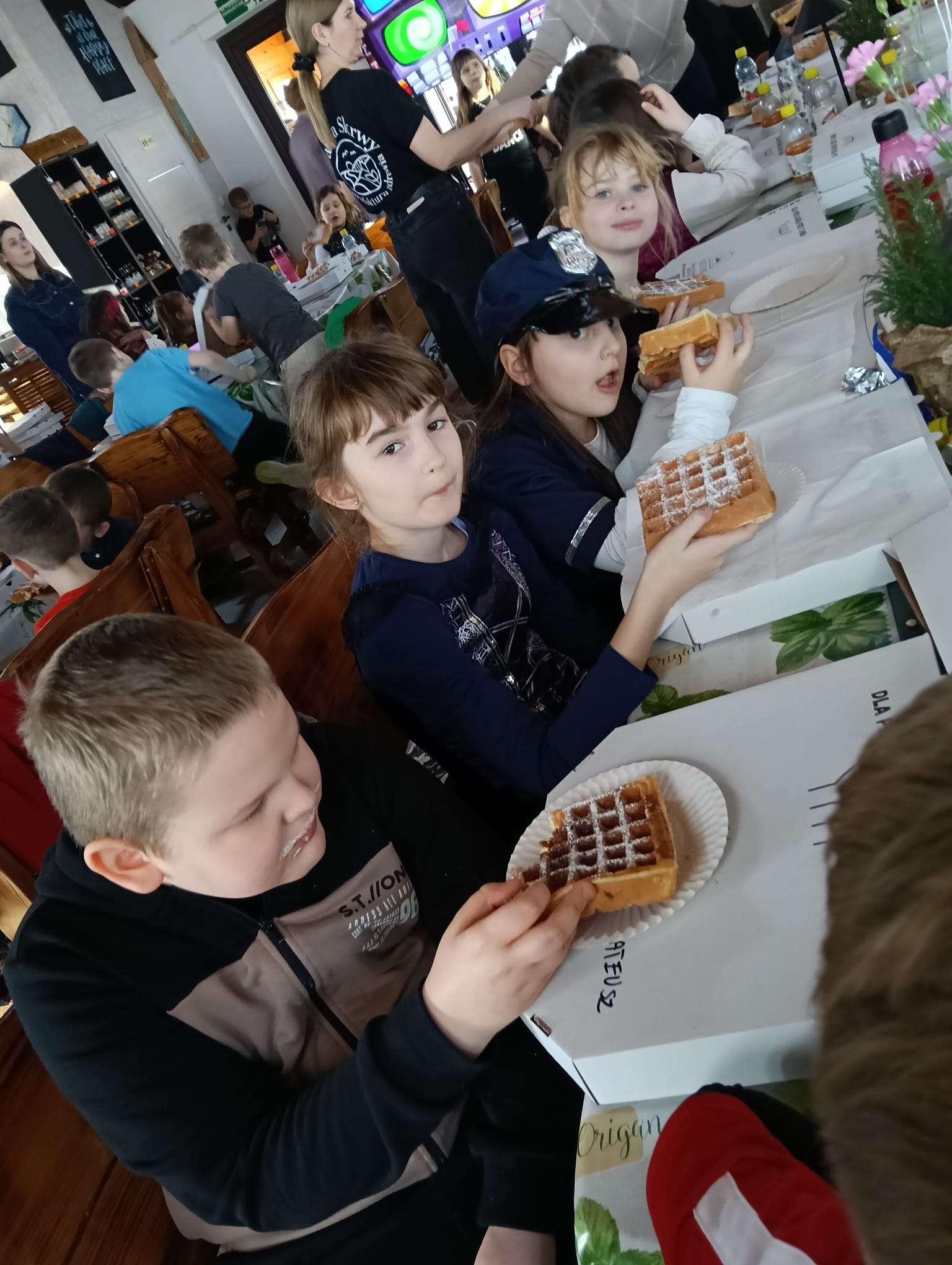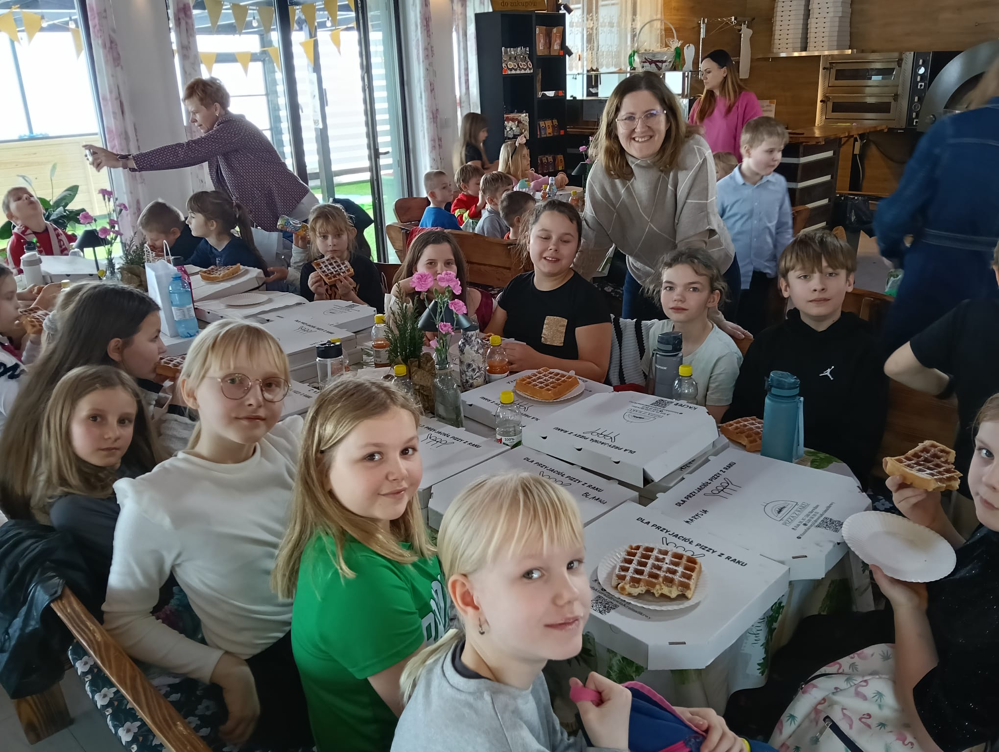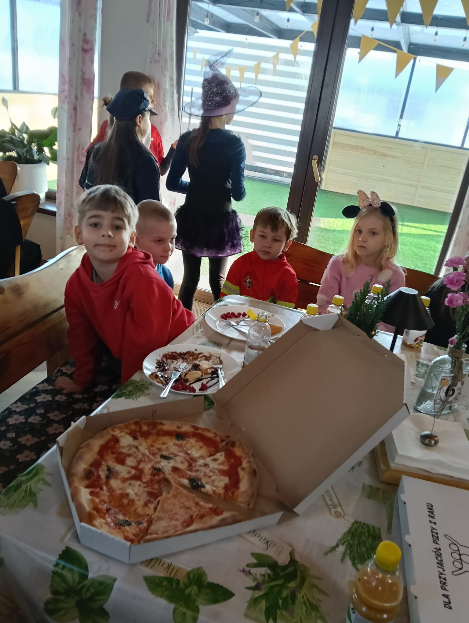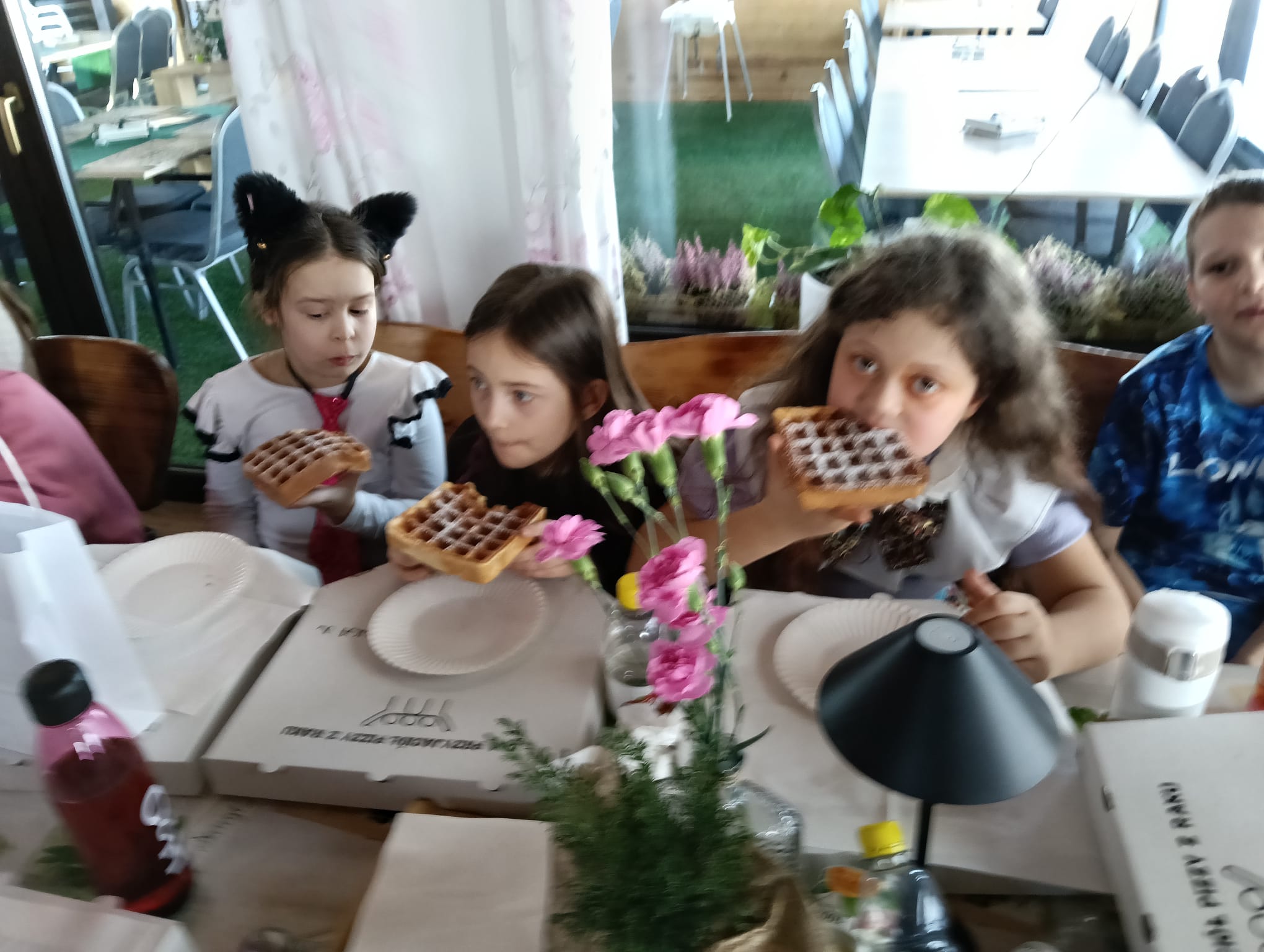 Gorąca pizza, słodkie naleśniki, gofry i soki owocowe dostarczyły dzieciom nie tylko energii do zabawy, ale również nadały naszemu spotkaniu rodzinnej , serdecznej atmosfery.