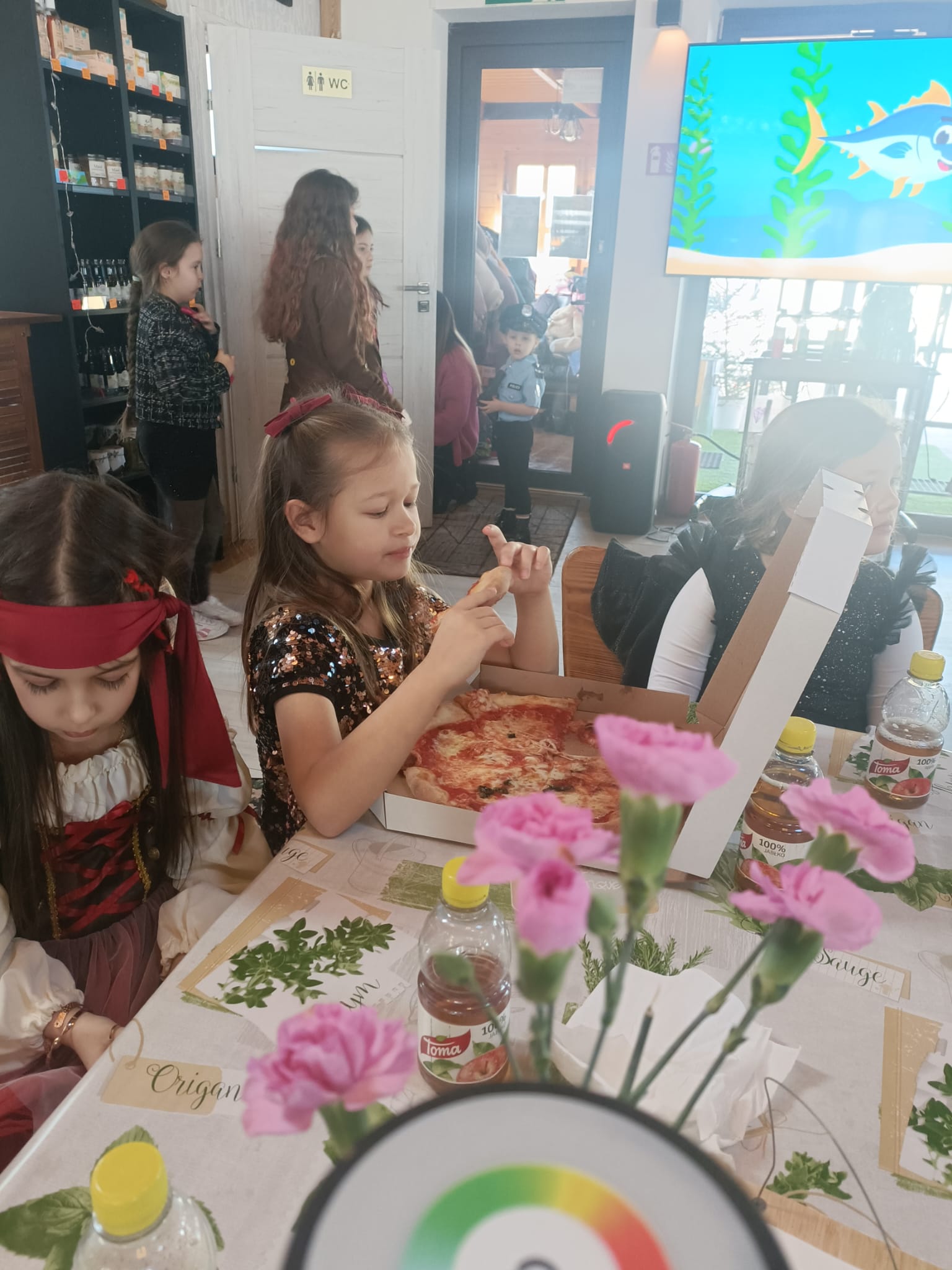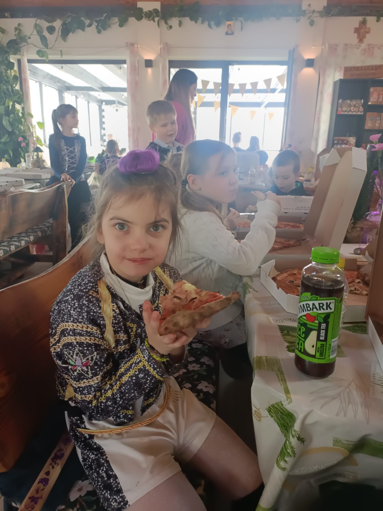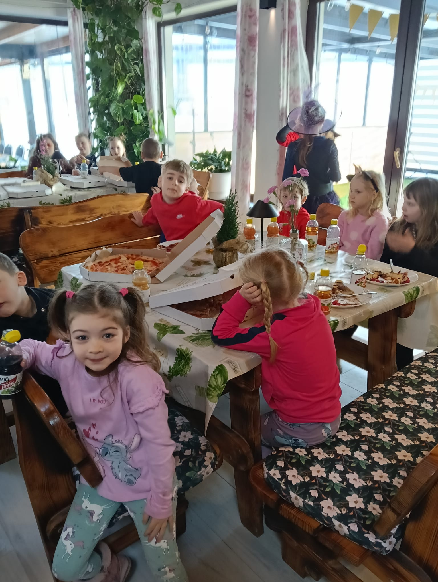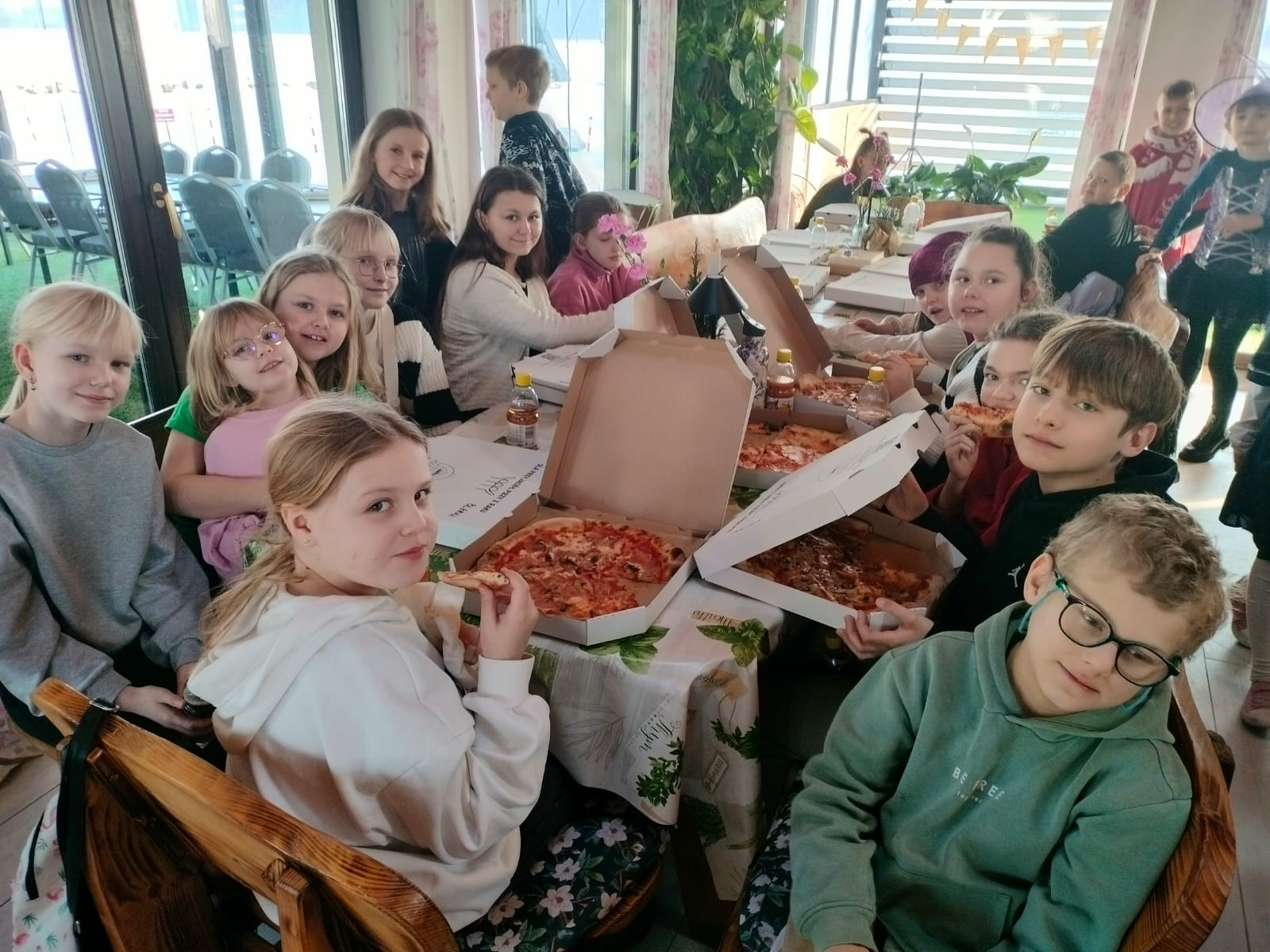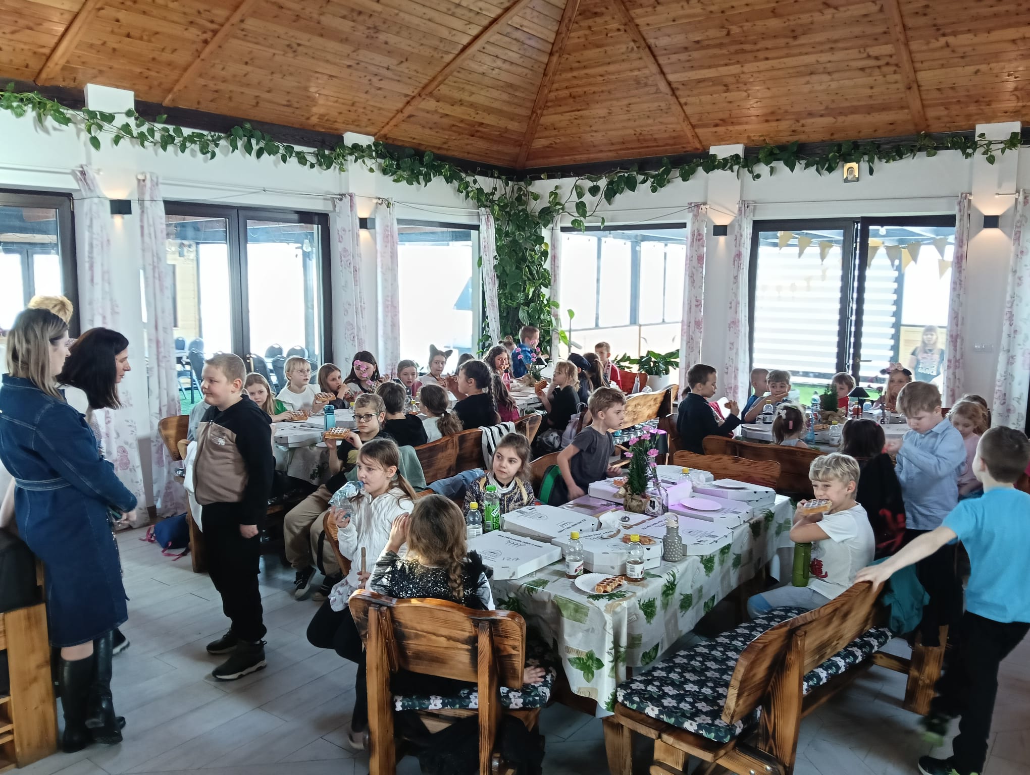 Gorąca pizza, słodkie naleśniki, gofry i soki owocowe dostarczyły dzieciom nie tylko energii do zabawy, ale również nadały naszemu spotkaniu rodzinnej , serdecznej atmosfery.