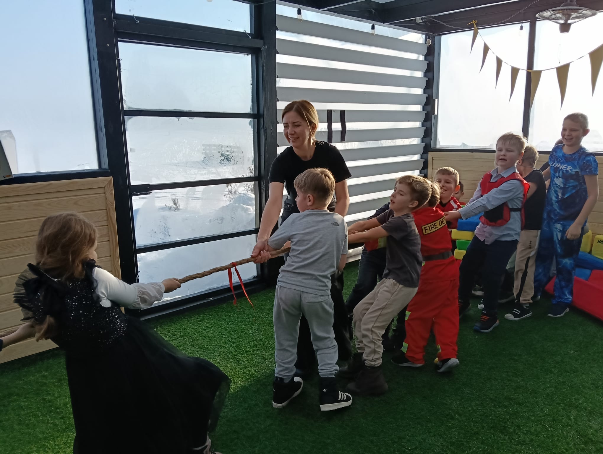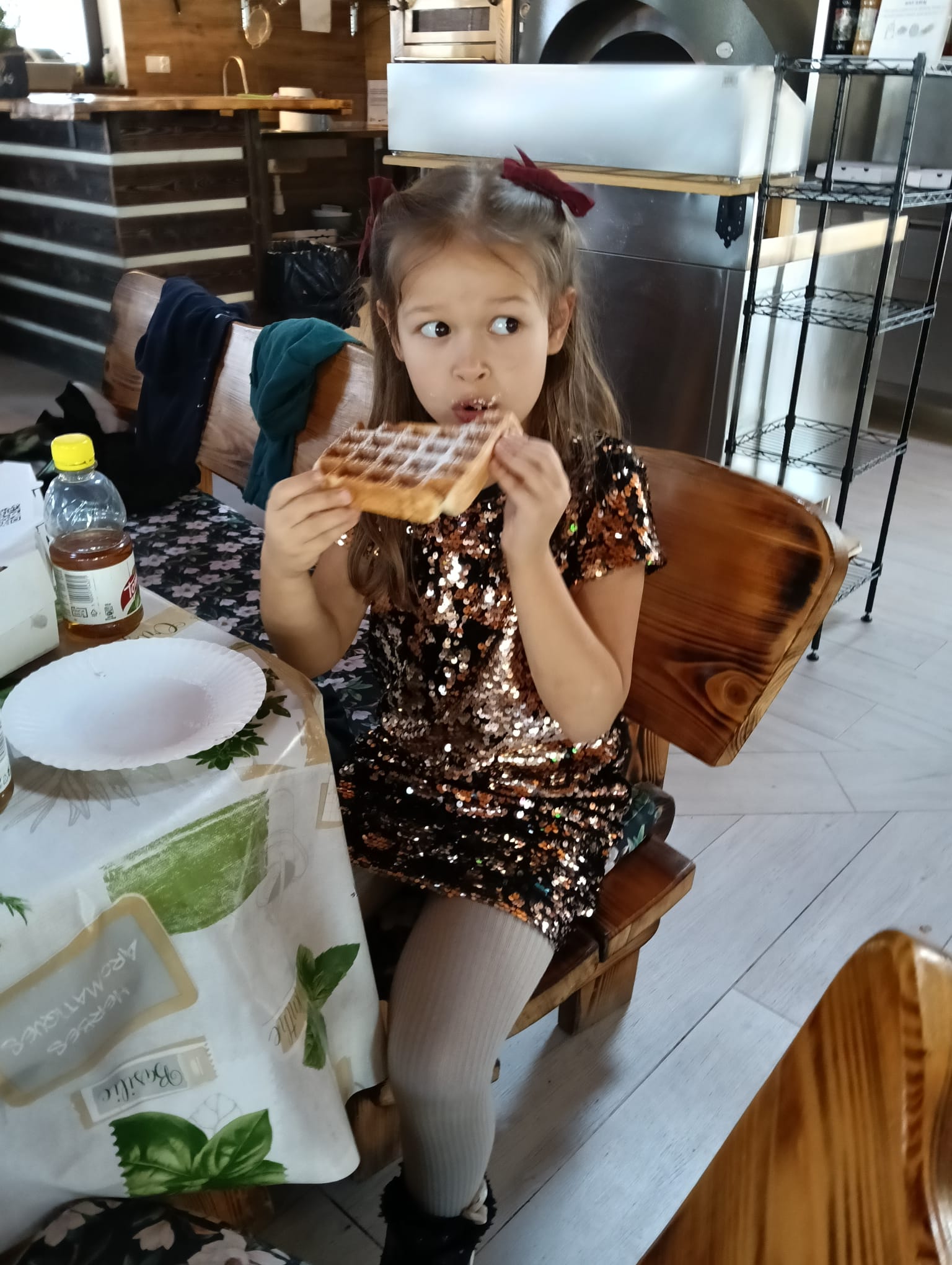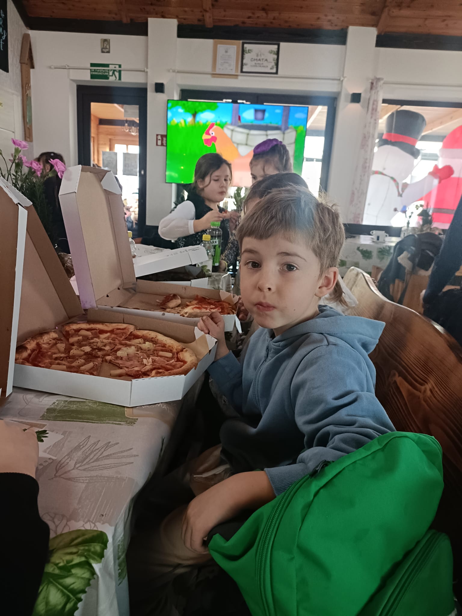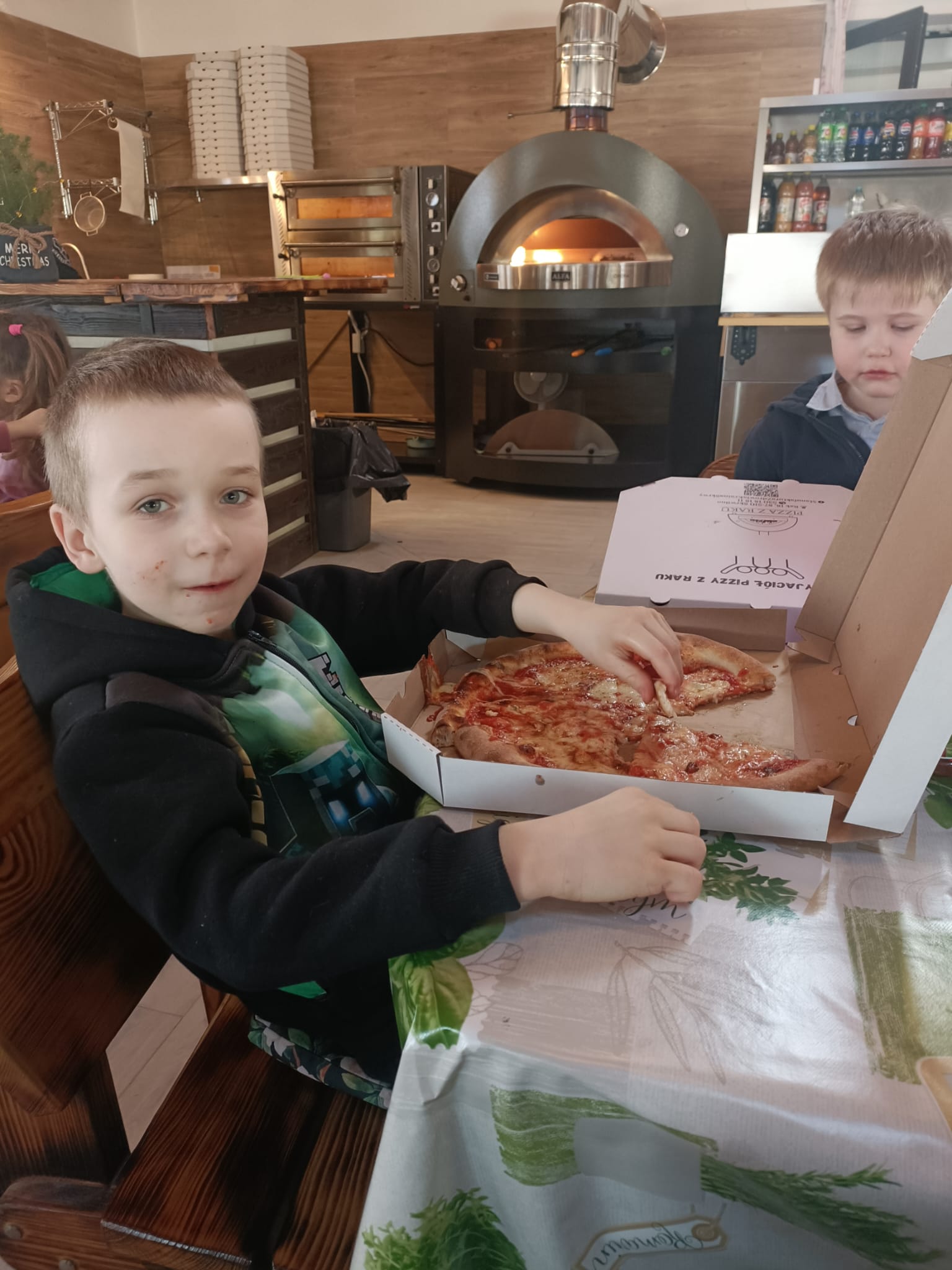 Gorąca pizza, słodkie naleśniki, gofry i soki owocowe dostarczyły dzieciom nie tylko energii do zabawy, ale również nadały naszemu spotkaniu rodzinnej , serdecznej atmosfery.